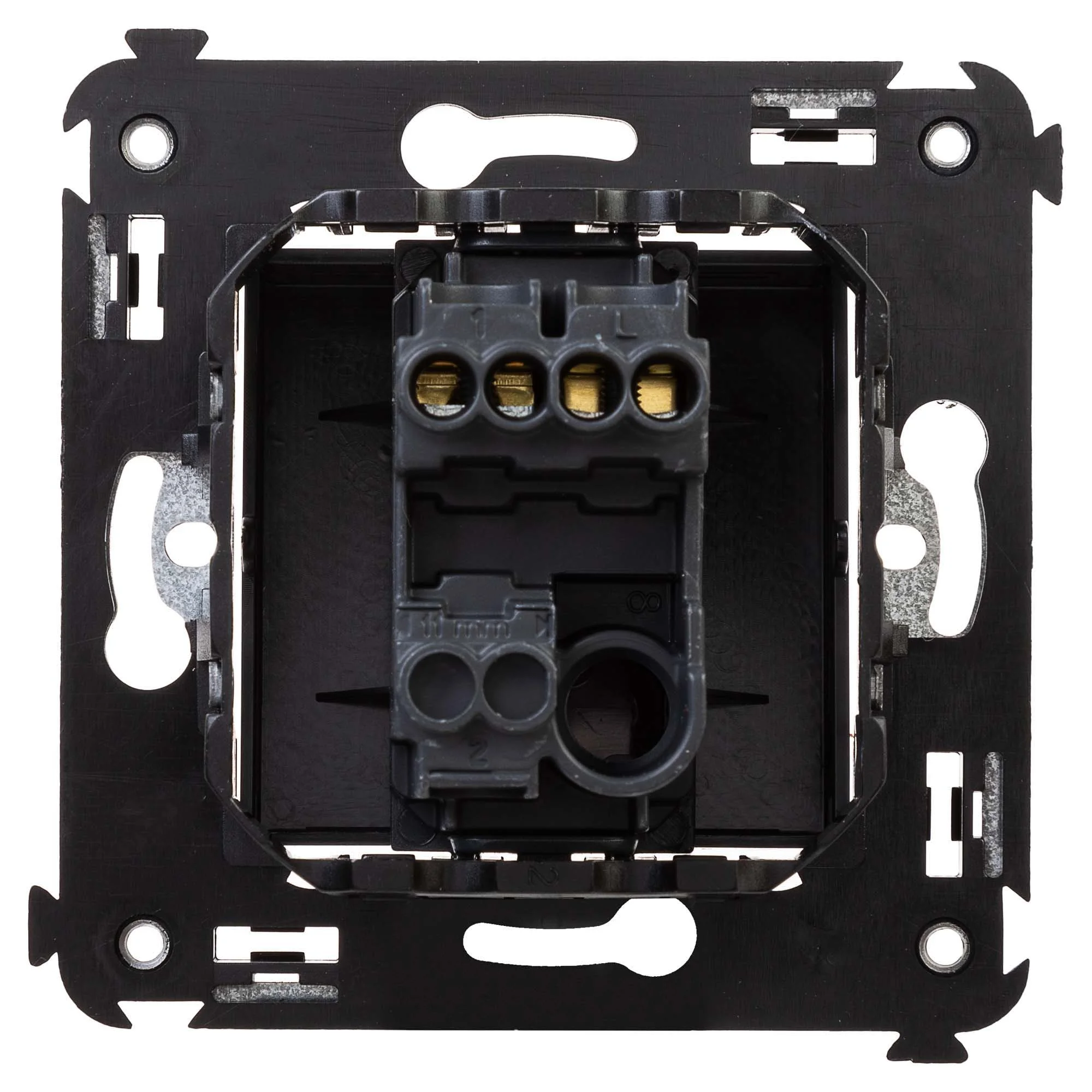 Выключатель однополюсный для монтажа в стену серии «Avanti». Предназначен для монтажа в подрозеточные коробки (код 59301), включения/выключения освещения. Диаметр отверстий для ввода кабелей – 3 мм (по 2 отверстия на одну клемму); винтовые зажимы; фиксация в подрозеточную коробку при помощи саморезов. Шаблон для зачистки кабеля – 11 мм; номинальный ток – 16 A; номинальное напряжение […]