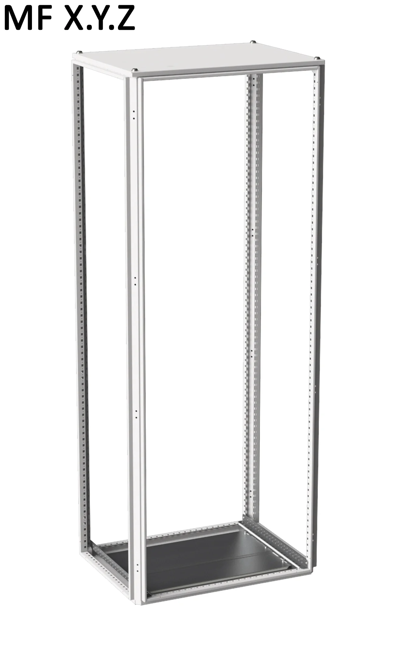 Сварная открытая со всех сторон рама MF, на которую навешиваются остальные узлы. Профиля рамы не замкнуты, изготовлены из листовой стали толщиной 2,0 мм. Выполнена перфорация под закладные гайки и под саморезы с шагом 25 мм.