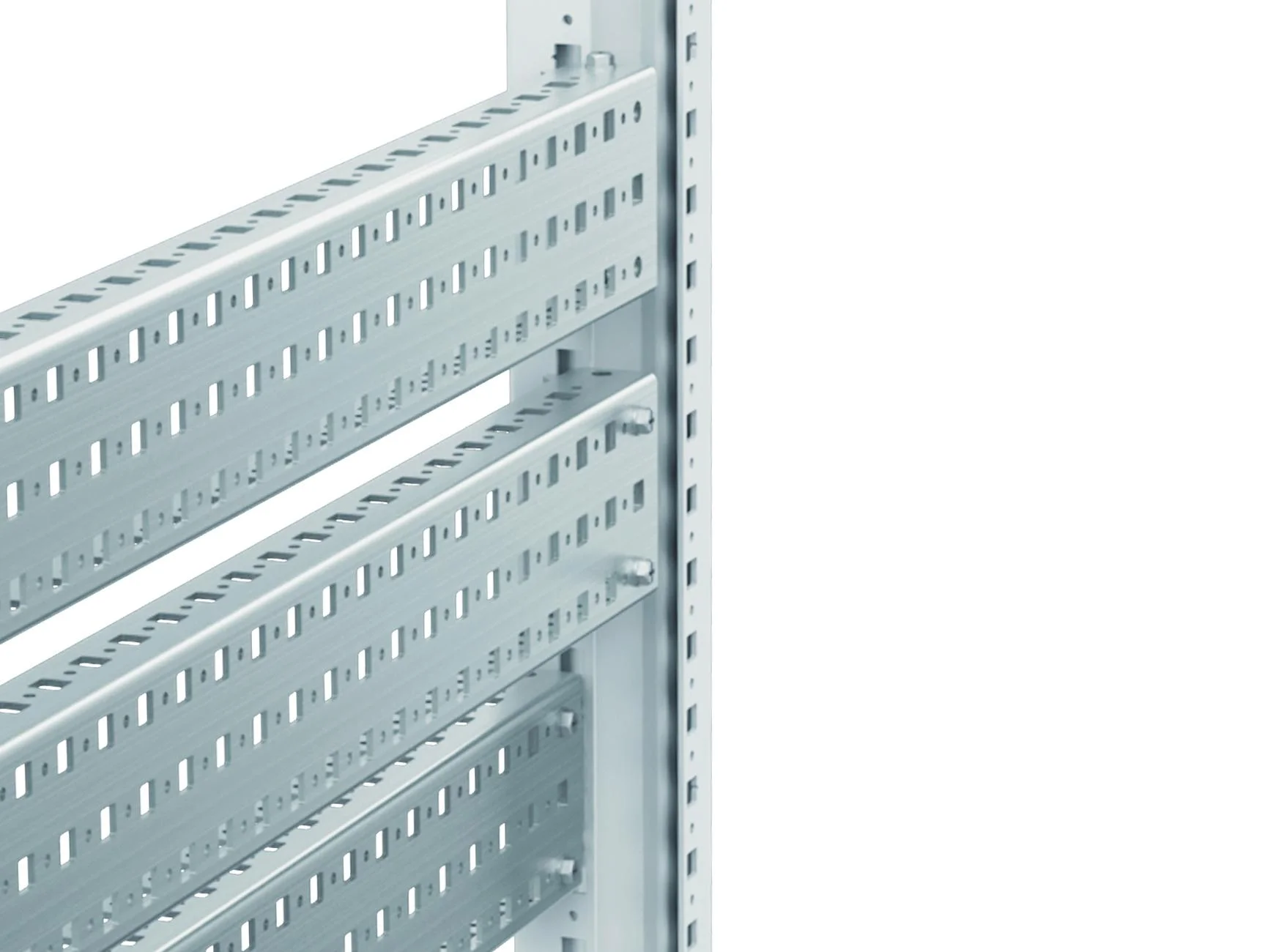 Предназначена для регулирования установки оборудования по глубине напольного распределительного шкафа.На рейке выполнена перфорация под закладные гайки и саморезы с шагом 25 мм.Крепится рейка к раме шкафа во внутренней плоскости и/или к другим рейкам.Статическая нагрузка 560N.