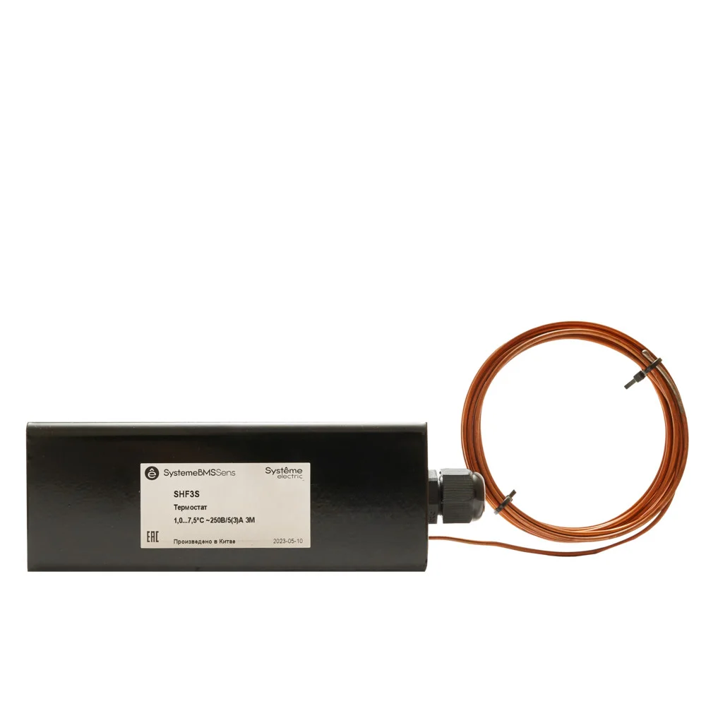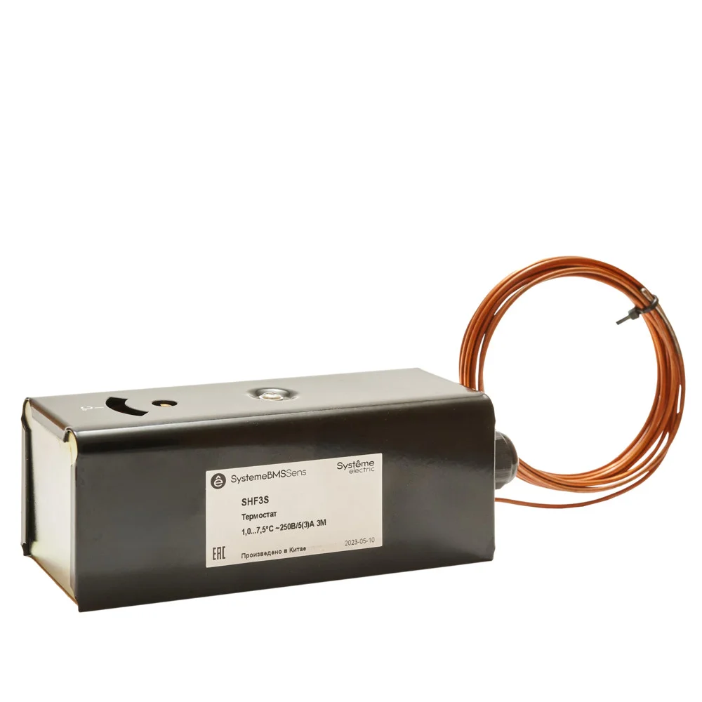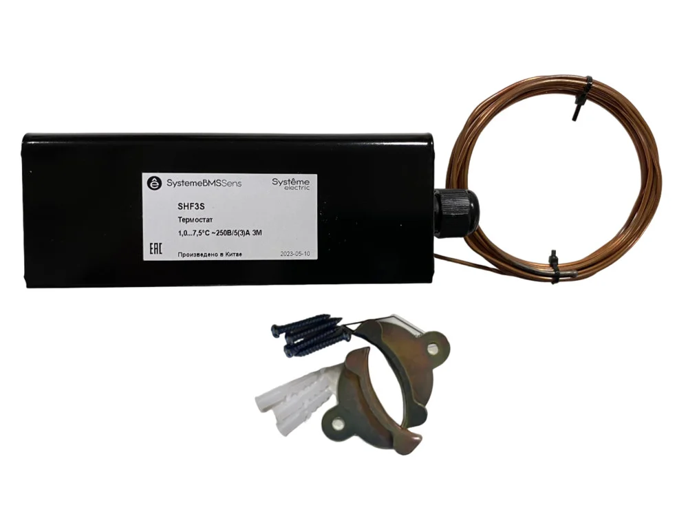 Термостат защиты от замораживания, регулируемый порог срабатывания в диапазон +1,0…7,5°С, автоматический сброс, капиллярная трубка длиной 3 м, выходной сигнал — переключающий контакт, кронштейны для трубки в комплекте поставки