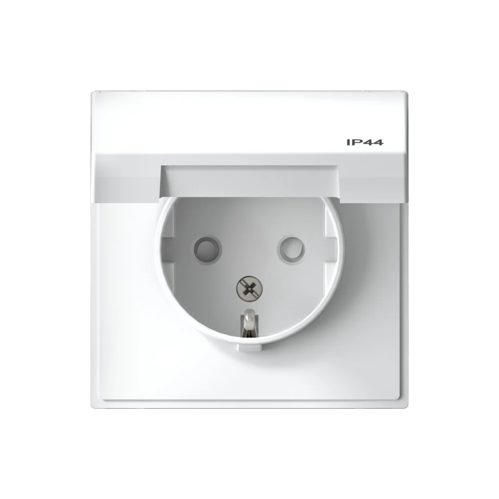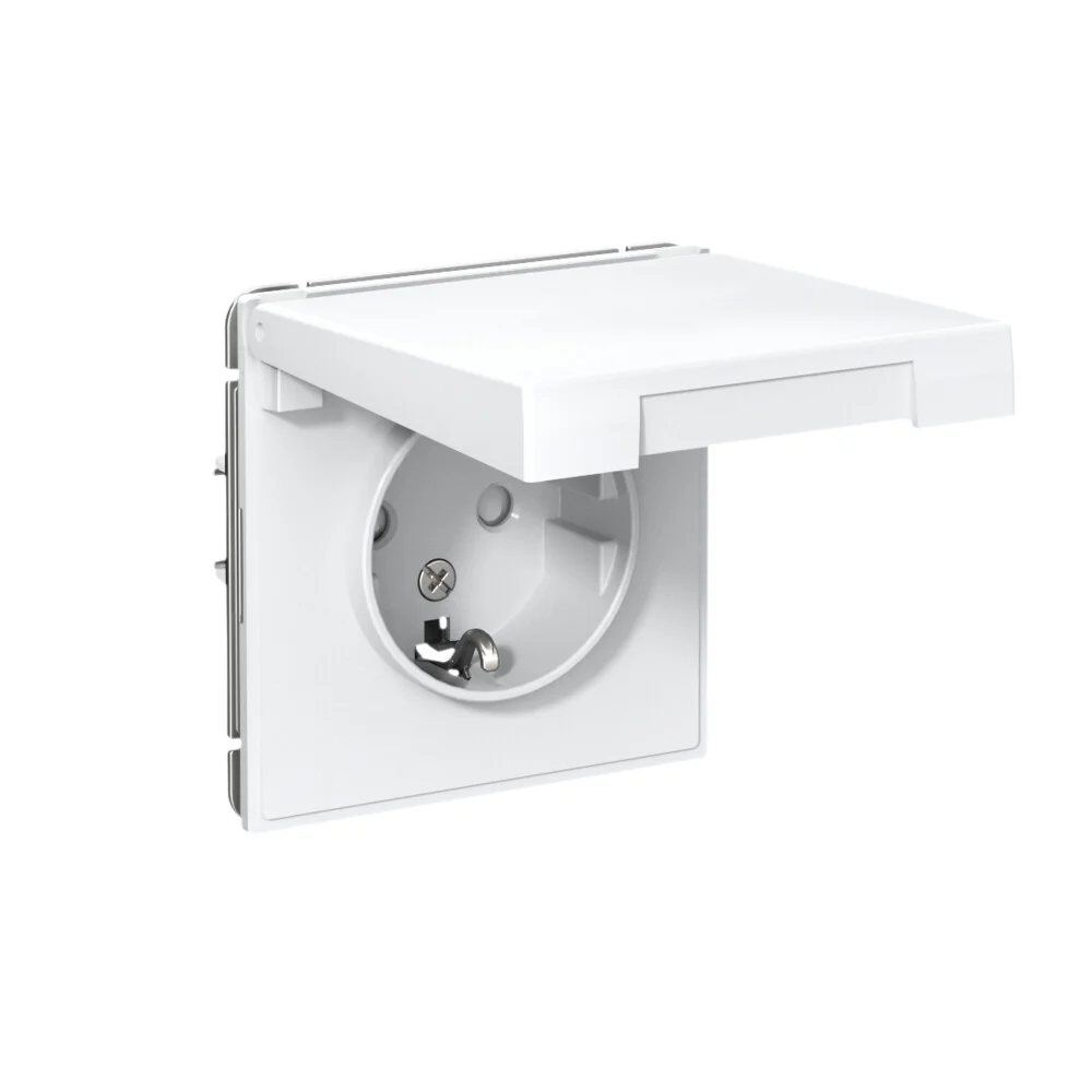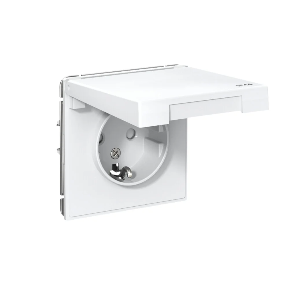 Systeme Electric Wessen 59 Aqua Бел Розетка с/з с крышкой с защитными шторками IP44 (в сборе, с рамкой)