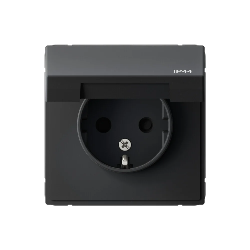 Systeme Electric ArtGallery Карбон Розетка с заземл. со шт. с крышк, 16А, IP44, механизм