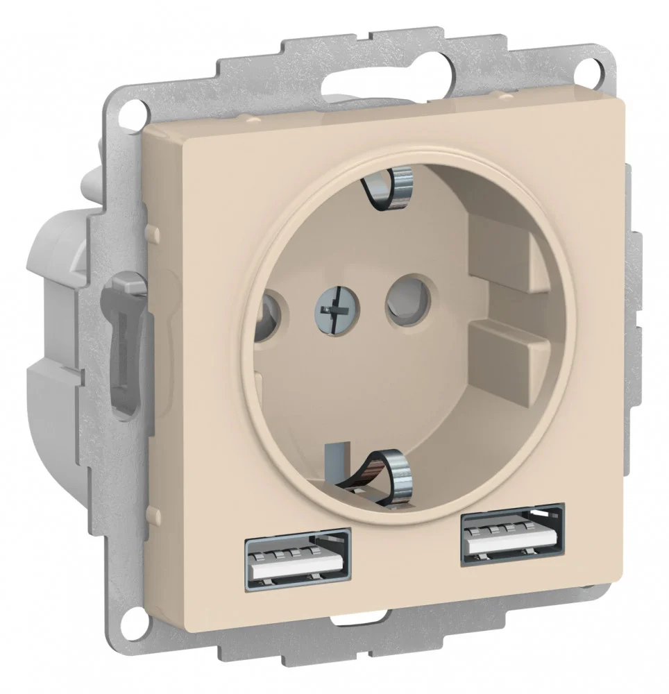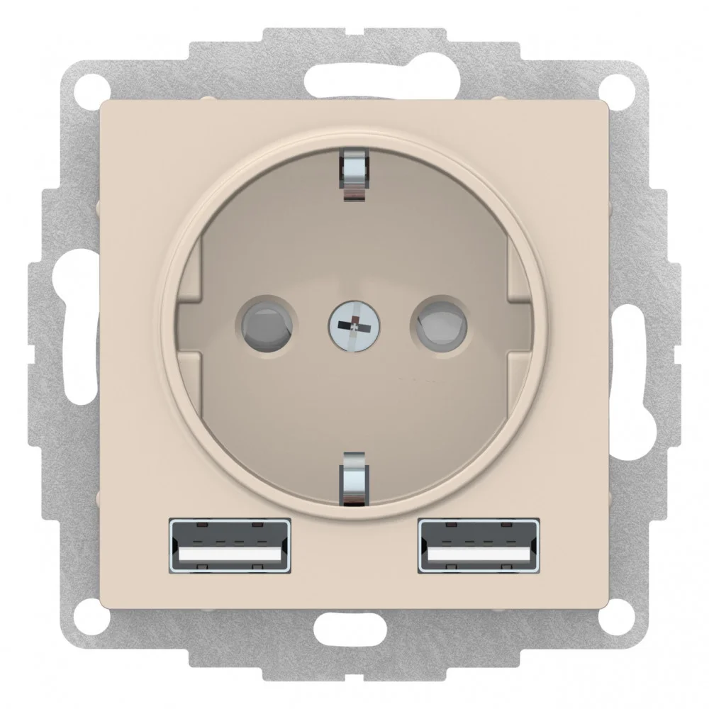 Systeme Electric AtlasDesign Бежевый SO + USB Розетка A+A, 5В/2,4А, 2х5В/1,2А, механизм
