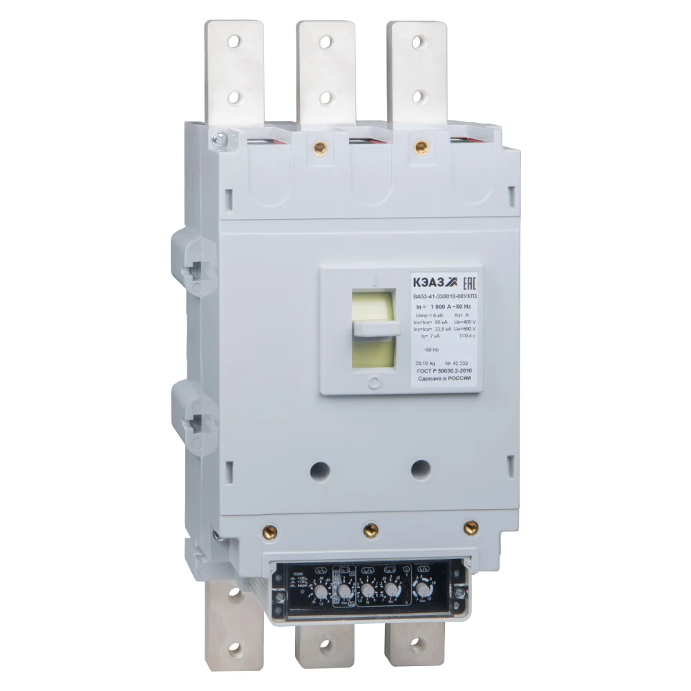 Блочный автоматический 3 полюсный выключатель переменного тока с предельной коммутационной способностью при переменном токе 85 кА на номинальный ток 400 А .