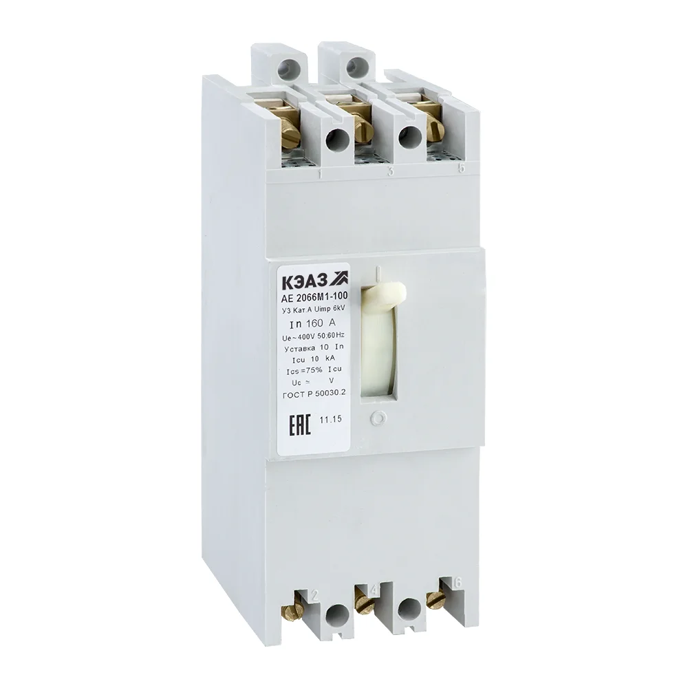 Блочный автоматический 3 полюсный выключатель переменного тока с предельной коммутационной способностью при переменном токе 20 кА на номинальный ток 125 А .