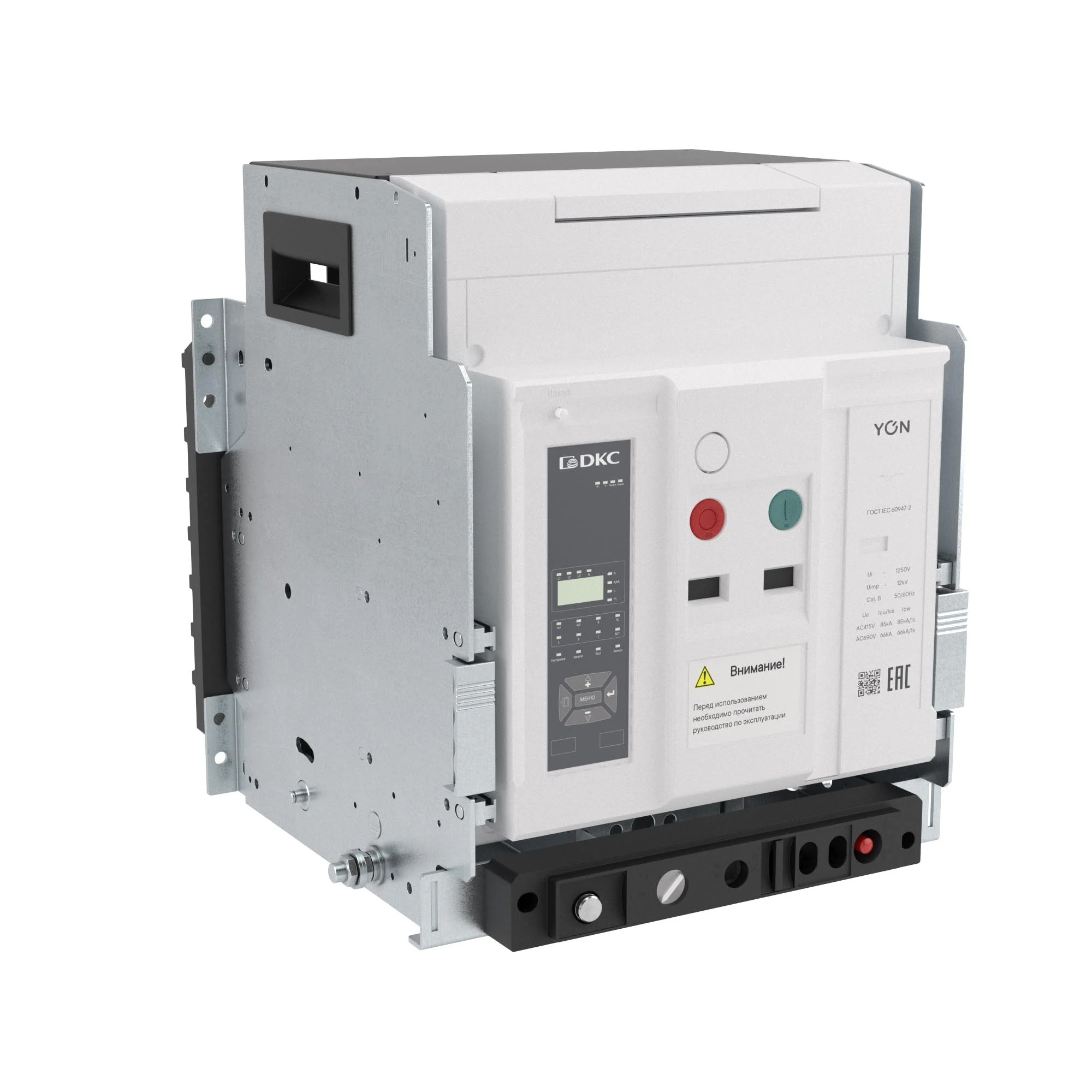 Воздушный автоматический выключатель серии YON max AGS предназначен для эксплуатации в сетях низкого напряжения до 415 В. Применяется для рабочих включений и отключений, а также для защит от перегрузок, короткого замыкания и замыкания на землю. Номинальный ток 1600 А, отключающая способность 80 kA, 3-х полюсный, выкатное исполнение, расцепитель 3H, управление ручное