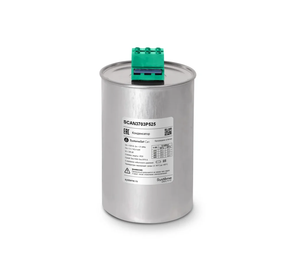 Низковольтный трёхфазный конденсатор торговой марки Systeme Electric серии SystemeSet типа Can предназначен для компенсации реактивной мощности. Силовой конденсатор представляет собой три однофазных конденсатора, собранных в единую конструкцию. В конденсаторах в качестве диэлектрика используется металлизированная полипропиленовая плёнка с функцией самовосстановления. В конструкцию конденсатора также входят: предохранитель с мембраной избыточного давления, клеммный блок с разрядным резистором. Корпус […]