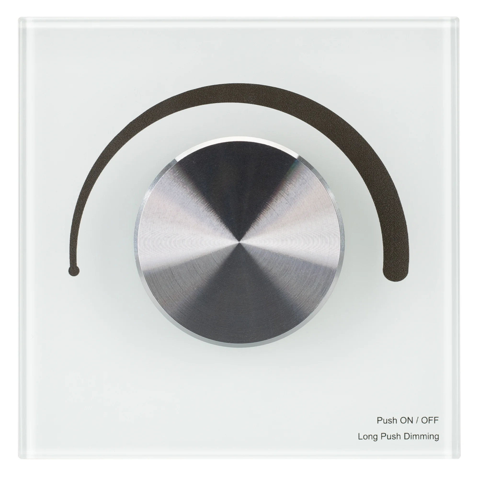 Встраиваемая роторная панель RF 2.4G, цвет белый. Материал — пластик. Выходной сигнал 0-10V / 1-10V (выбирается переключателем на корпусе). Управление яркостью с помощью роторного вращателя. Возможно управление от пультов по радиоканалу 2.4G, может управлять любыми диммерами и контроллерами SMART по радиоканалу 2.4G. Питание AC 85-265V, ток нагрузки 1.5А. Габариты 86х86х49 мм.