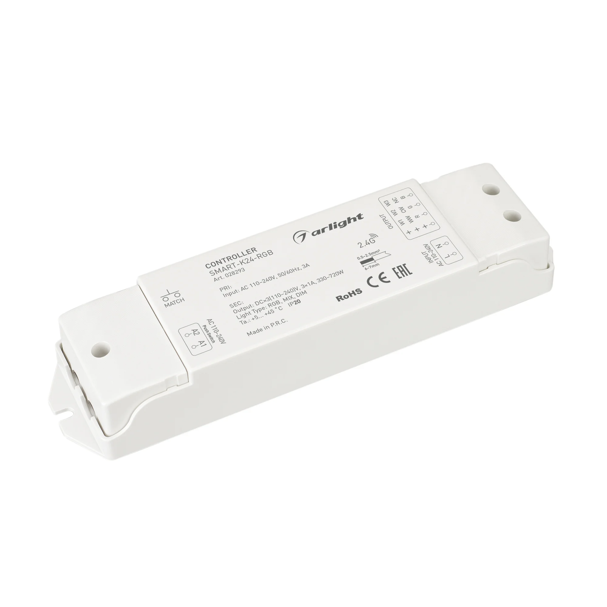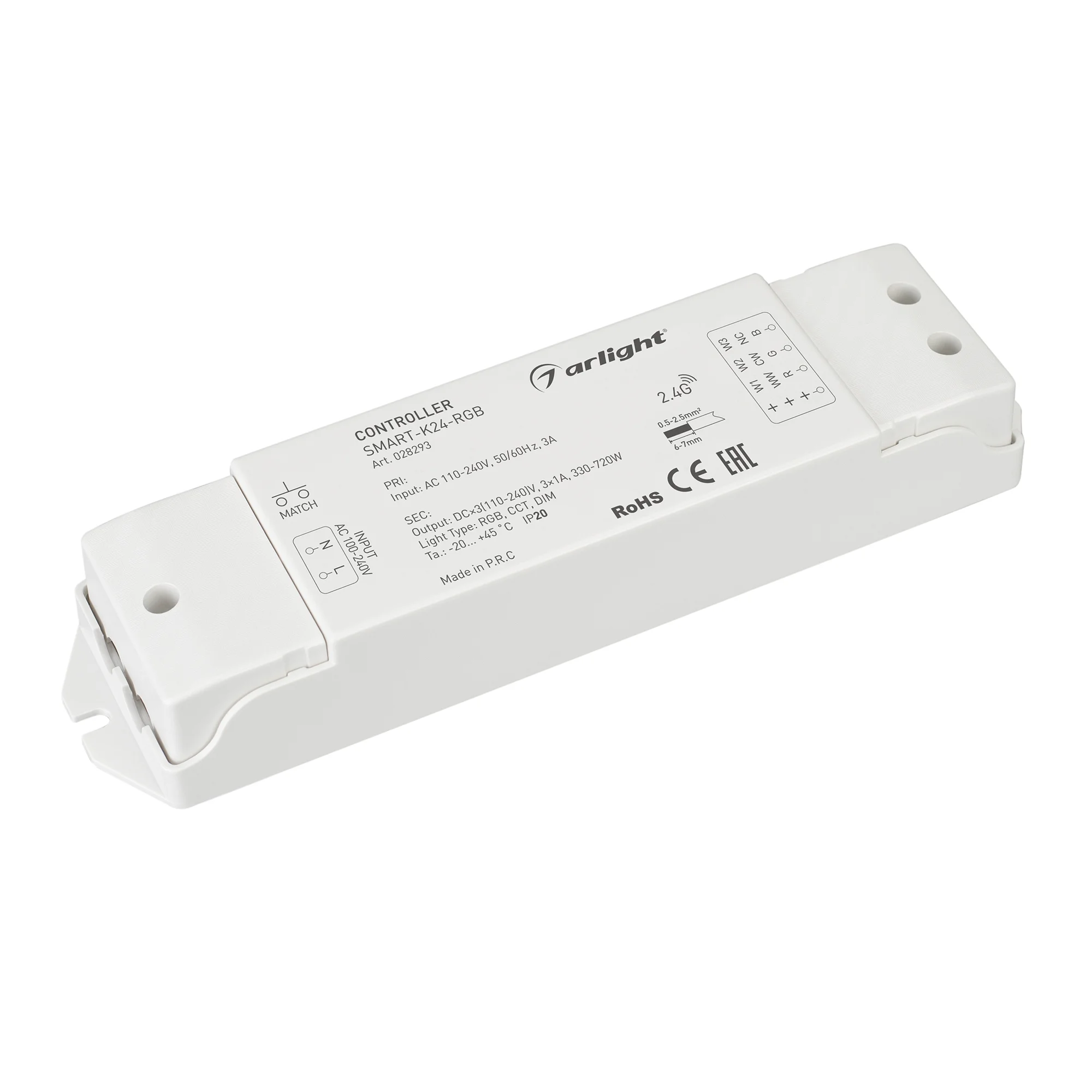 Контроллер для 230V светодиодной ленты (ШИМ). Питание/рабочее напряжение AC 110-240V, максимальный ток 1A на канал, 3 канала, максимальная мощность 330-720W. Винтовые клеммы. Корпус — PVC. Габариты 175х45х27 мм. Управляется пультами и панелями серии SMART (поставляются отдельно).