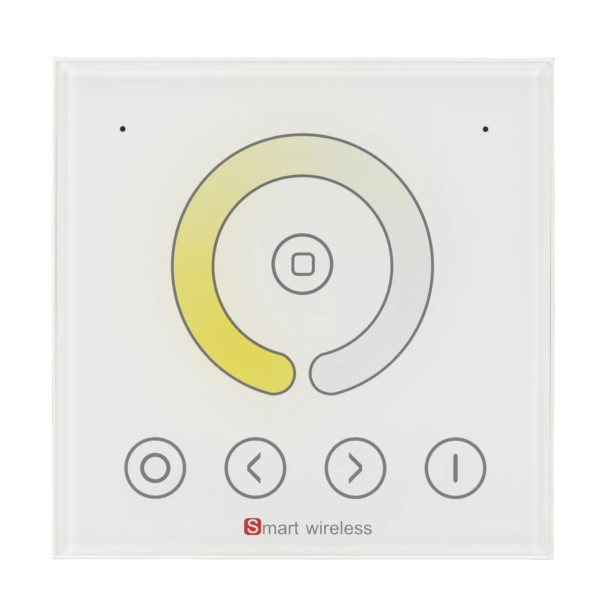 Встраиваемая сенсорная панель (Европейский стандарт) для управления MIX светодиодными лентами, цвет белый. 4 канала (2 пары параллельных каналов), питание DC 12-24V, ток нагрузки 4x4A, мощность нагрузки 192-384W. Габариты 86х86х33 мм.