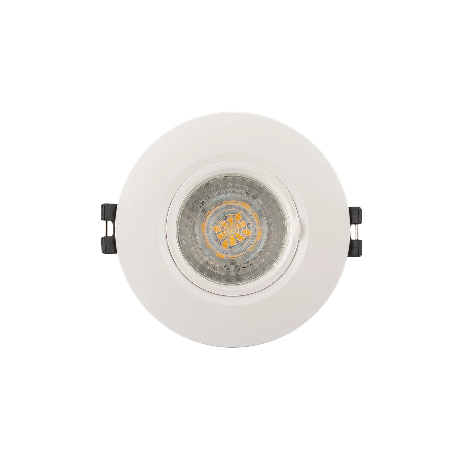 Встраиваемый светильник даунлайт. Мощность 8 Вт, св. поток 610 лм, 76 лм/Вт, тёплый 3000 K, CRI>90, угол 85°, напряжение питания 230 В. Чёрный круглый корпус из алюминия, степень защиты IP54. Размер: диаметр 84 мм, высота 49 мм. Монтаж встраиваемый, установочное отверстие: диаметр 75 мм. Драйвер IP54, 30-45 В, 200 мА, пульсация <3%.