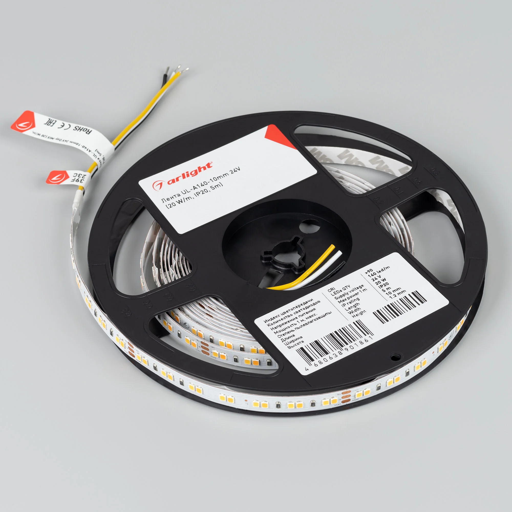 Светодиодная лента UL серии A140 с изменяемым цветом свечения. Светодиоды SMD 2835, 140 шт/м, белая плата шириной 10 мм, скотч 3M. Цвет MIX ДНЕВНОЙ 4000 K + ТЁПЛЫЙ 2400 K. Индекс цветопередачи CRI>90, угол 120°. Питание 24 В, мощность 20 Вт/м (100 Вт на 5 м). Размеры 5000x10x1.2 мм. Мин. отрезок 100 мм, 14 светодиодов. […]