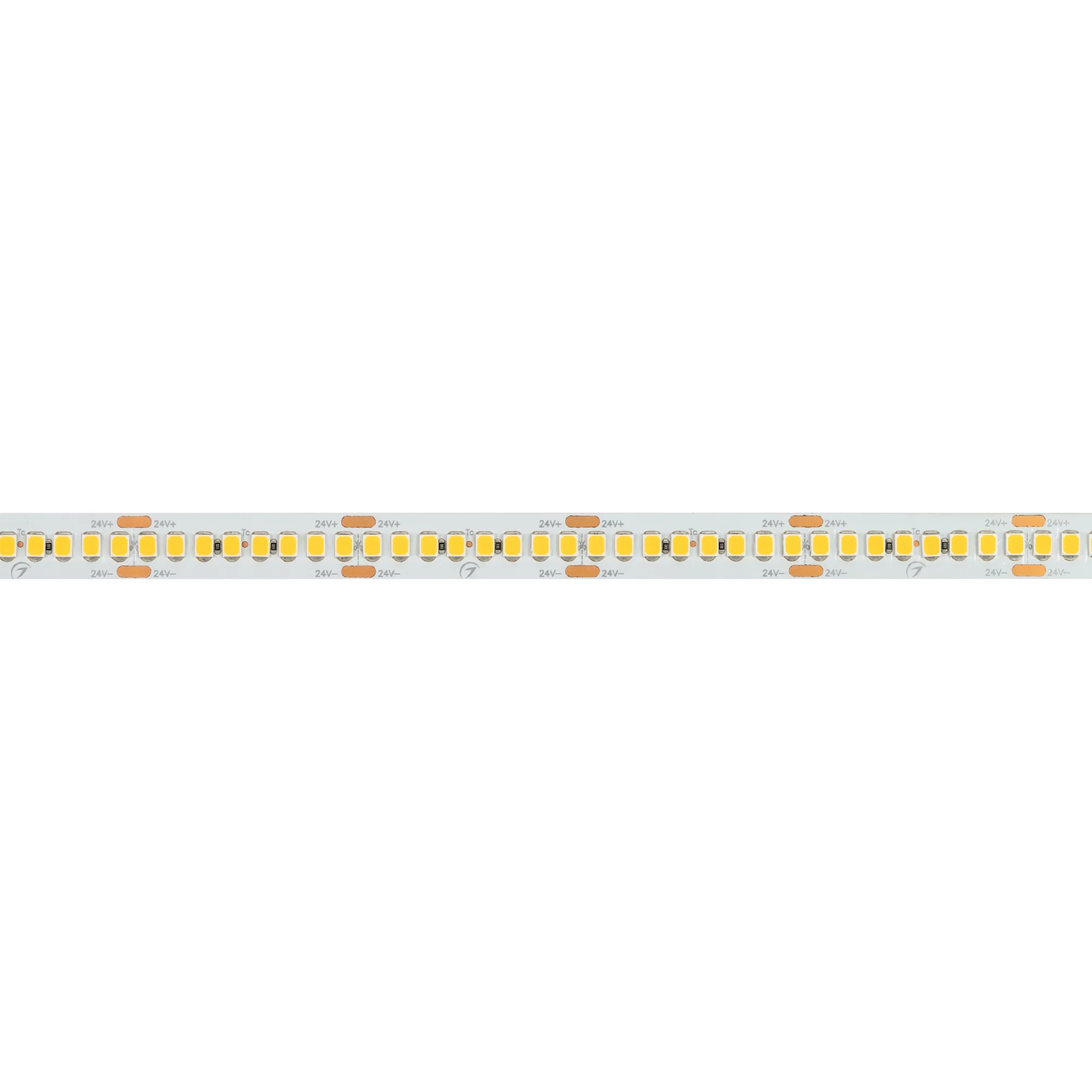 Светодиодная лента RT серии A180. Светодиоды SMD 3528, 180 шт/м, белая плата шириной 8 мм, скотч 3M. Цвет ТЕПЛЫЙ 3000K, индекс цветопередачи CRI>90, угол 120°. Питание 24 В, мощность 14.4 Вт/м (72 Вт на 5 м). Размеры 5000x8x2 мм. Мин. отрезок 33.33 мм, 6 светодиодов. Цена за 1 м. Кратность заказа поставщику: 5 м.