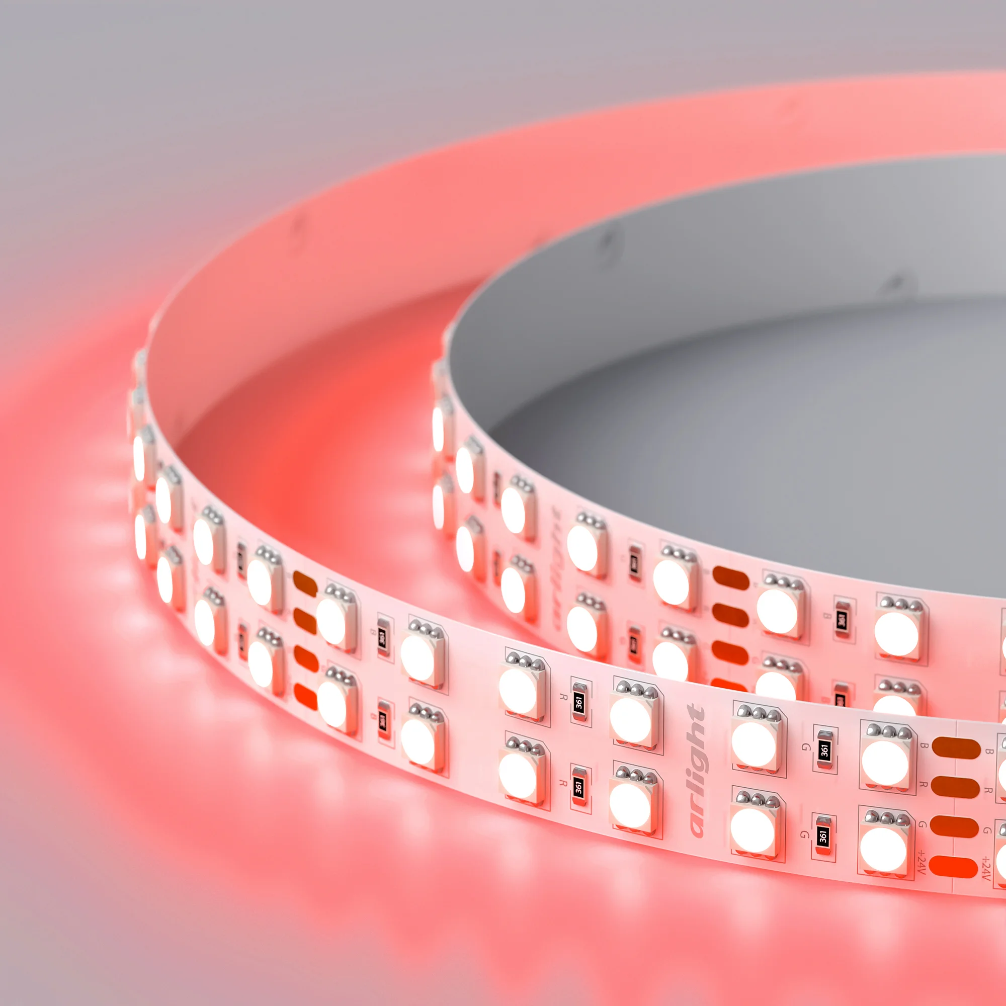 Светодиодная мультицветная лента RT серии A168. Светодиоды SMD 2835, 168 шт/м, белая плата шириной 10 мм, скотч 3M. Цвет RGB + ТЕПЛЫЙ 3000K, световая эффективность белого 150 лм/Вт, индекс цветопередачи CRI>90, угол 120°. Питание 24 В, мощность 20 Вт/м (100 Вт на 5 м). Размеры 5000x10x1.5 мм. Мин.отрезок 83.33 мм, 14 светодиодов. Цена за 1 […]
