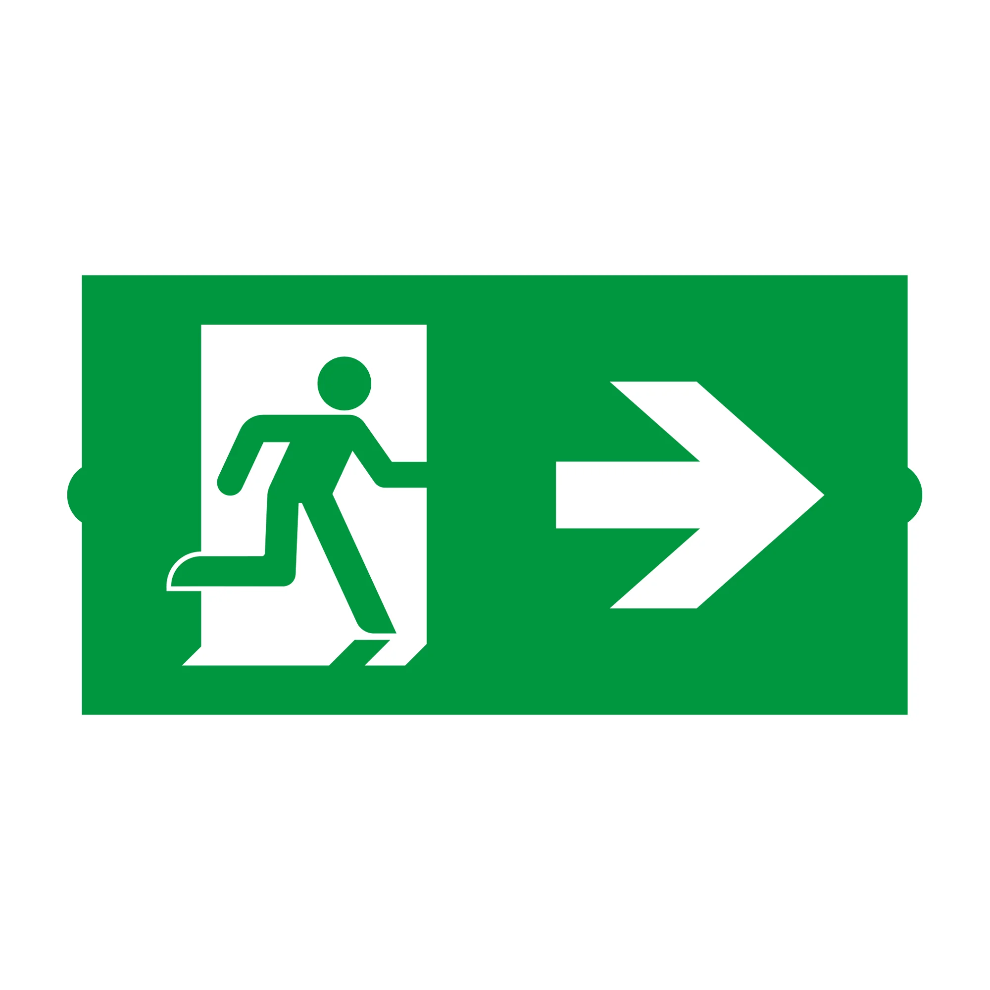 Кляющаяся пиктограмма «Выход» для аварийных панелей серии EMG-PROOF. размер 200х100мм. Для поклейки рекомендуется соблюдать инструкцию от аварийной панели PROOF.