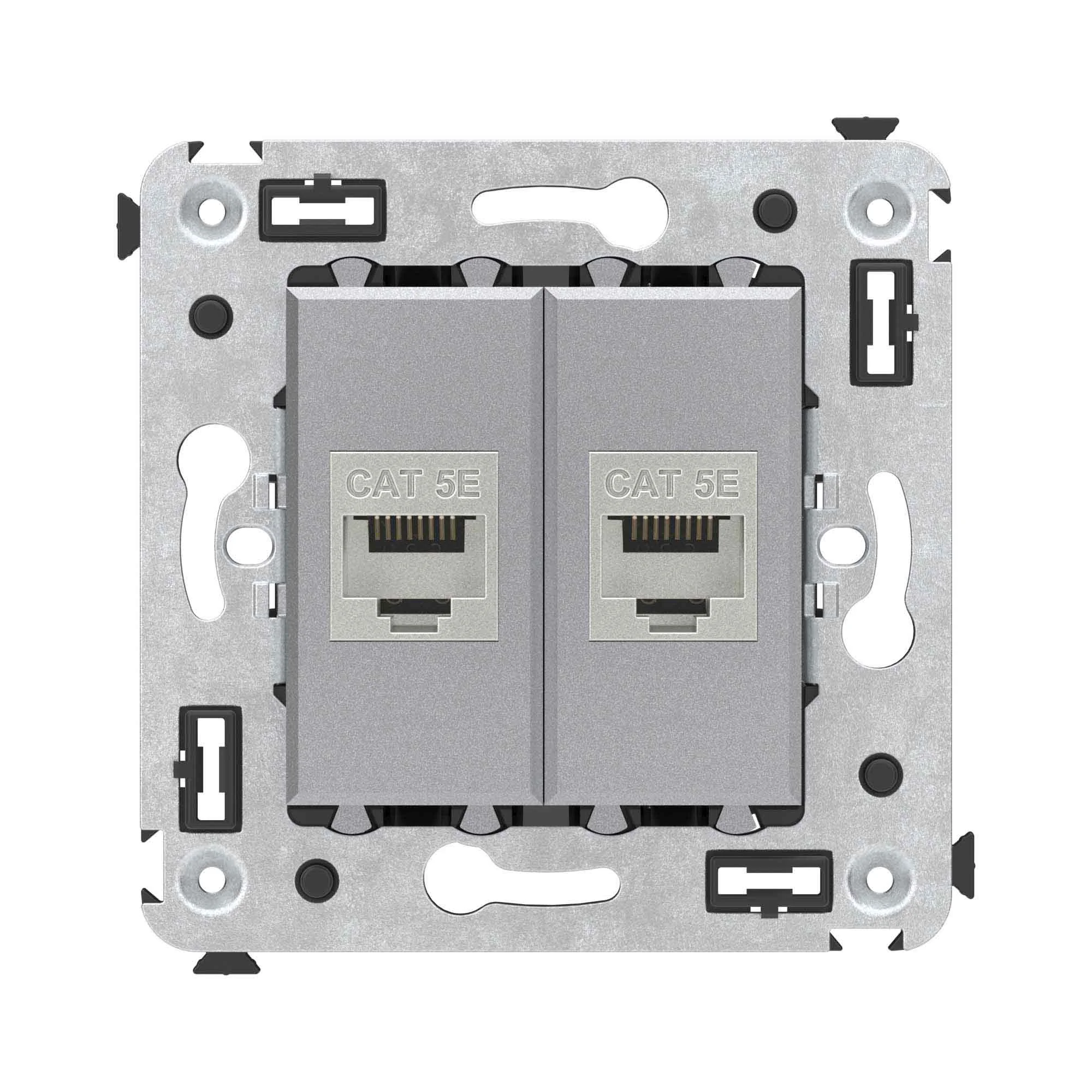DKC Avanti Компьютерная розетка RJ-45 без шторки в стену, кат.5e двойная экранированная, «Закаленная сталь»
