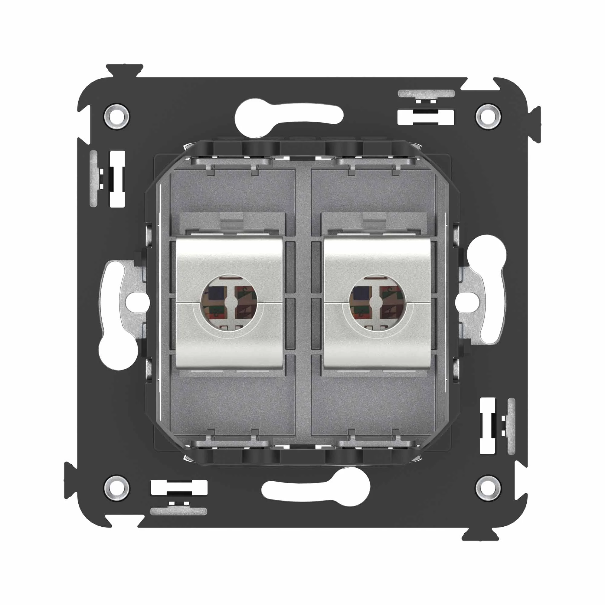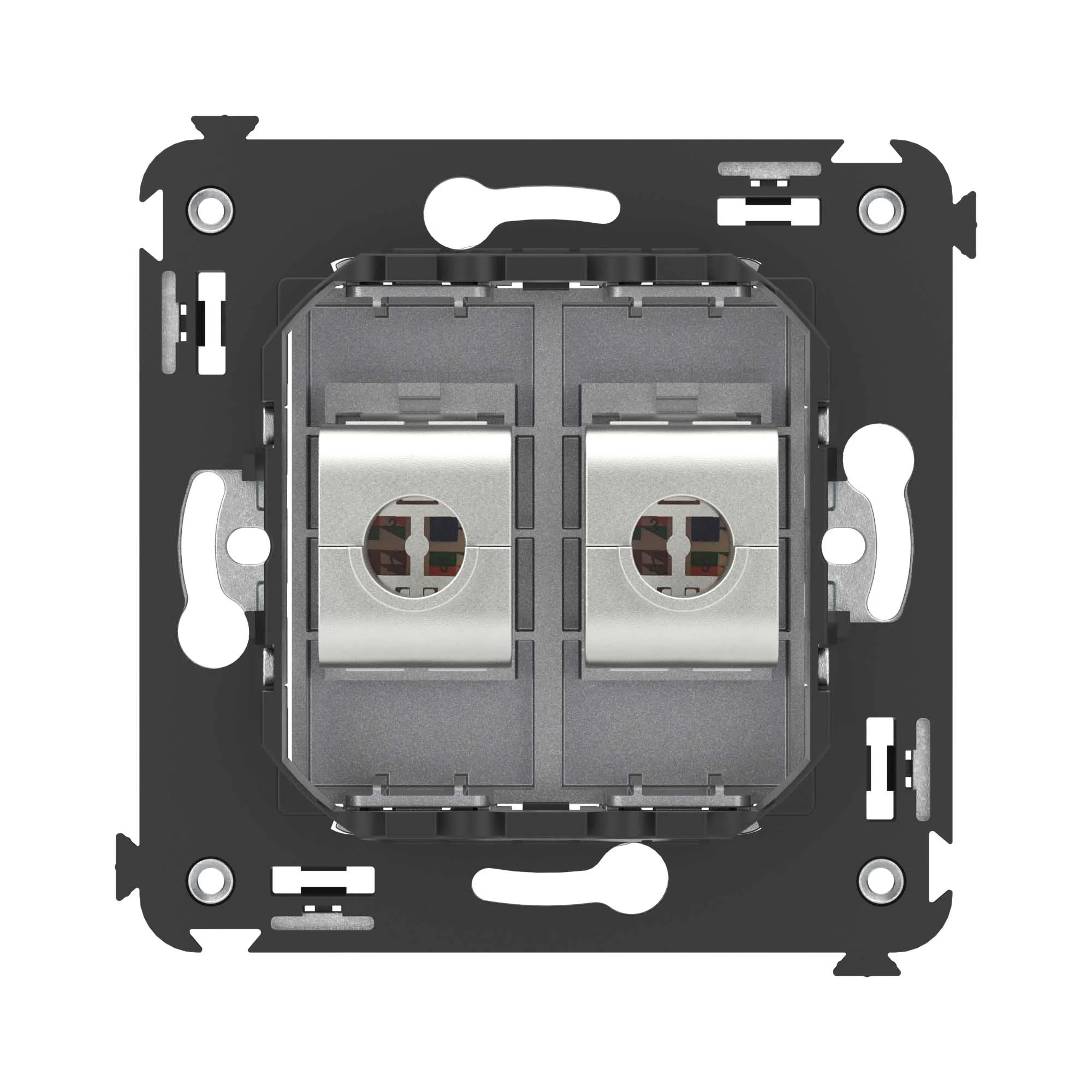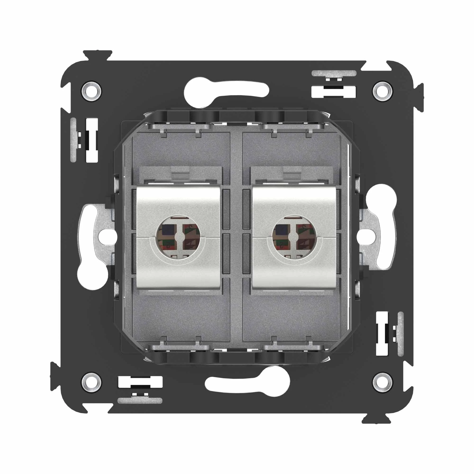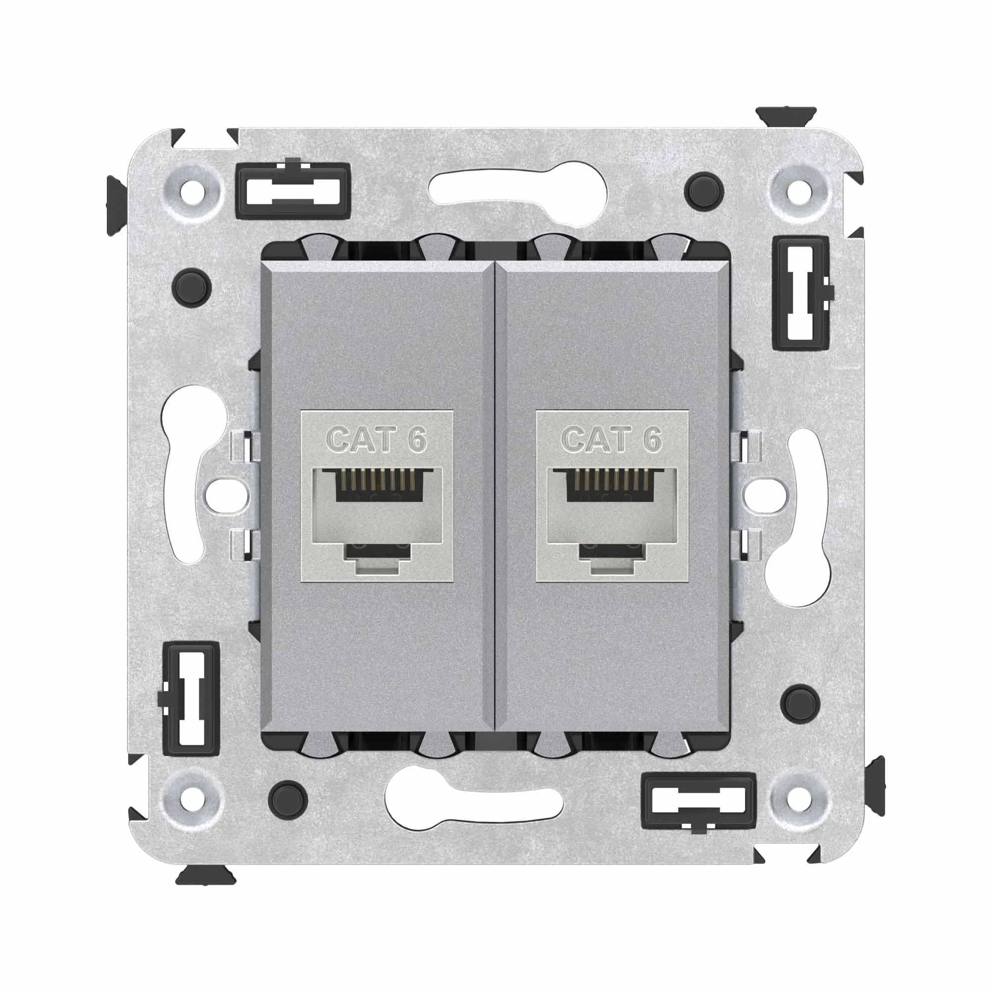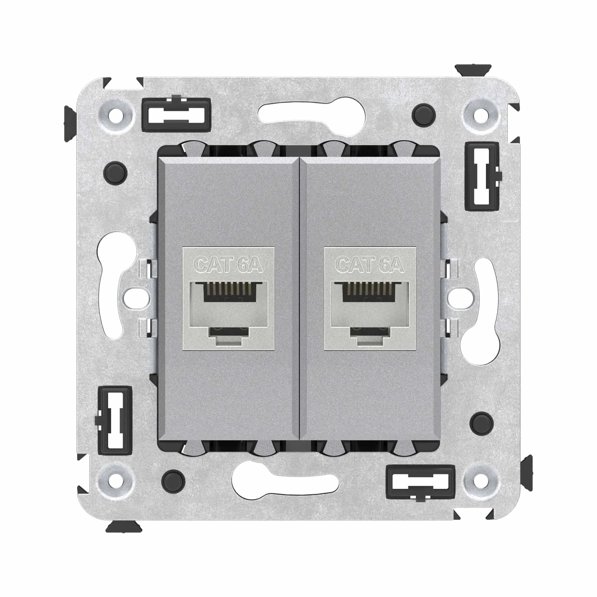DKC Avanti Компьютерная розетка RJ-45 без шторки в стену, кат.6А двойная экранированная, «Закаленная сталь»