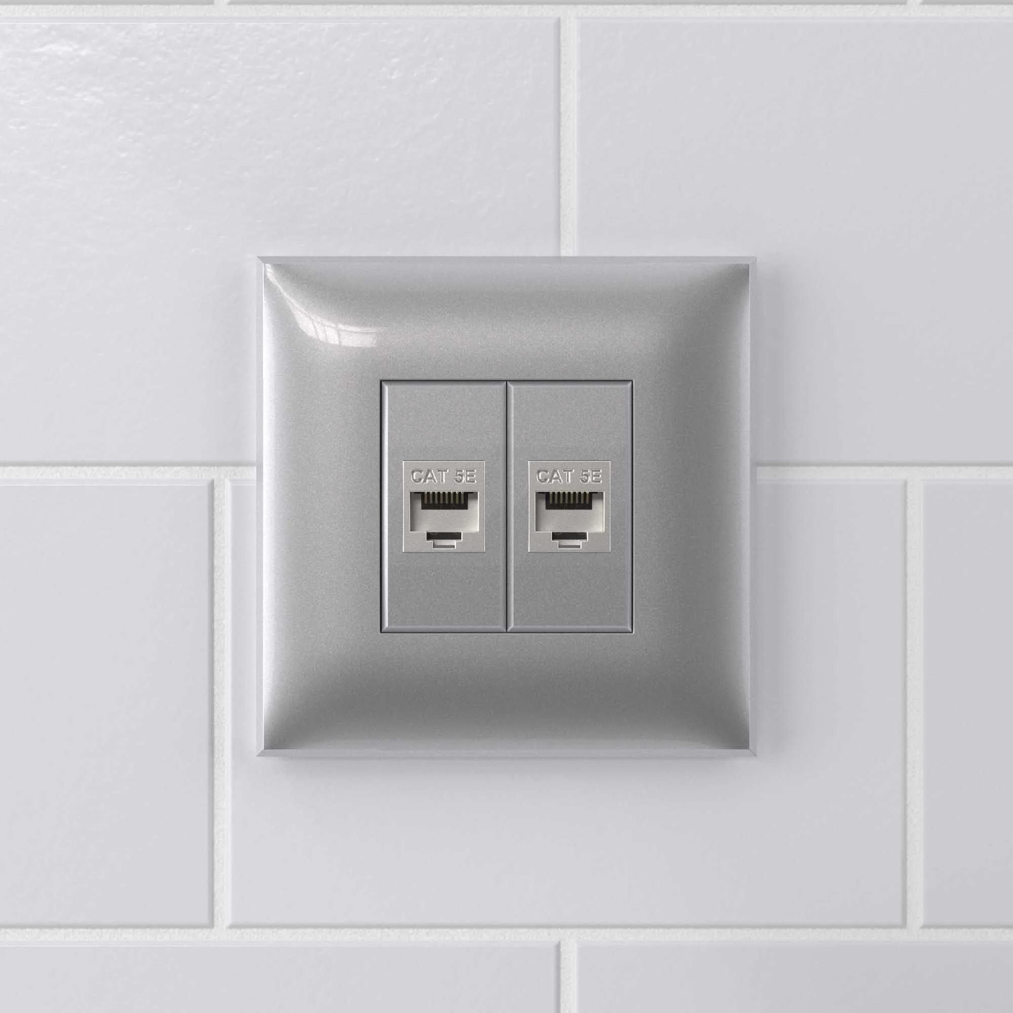 DKC Avanti Компьютерная розетка RJ-45 без шторки в стену, кат.6 двойная экранированная, «Закаленная сталь»