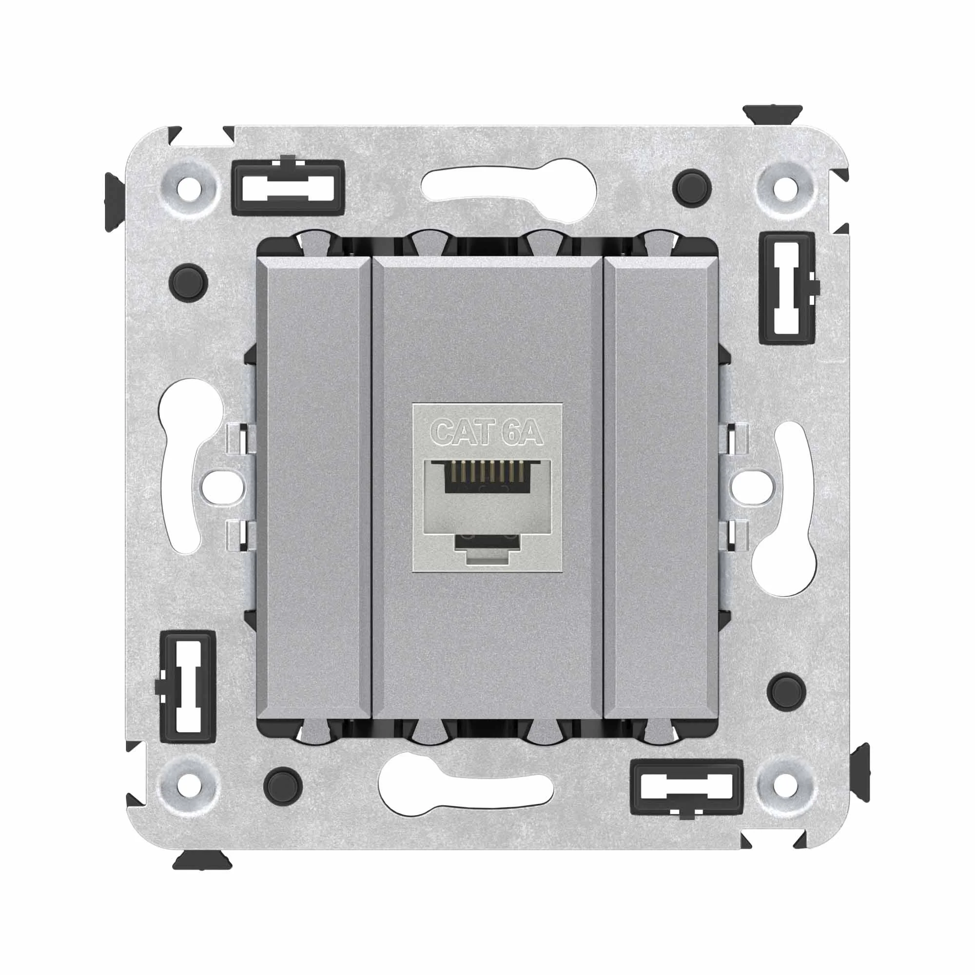 DKC Avanti Компьютерная розетка RJ-45 без шторки в стену, кат.6А одинарная экранированная, «Закаленная сталь»