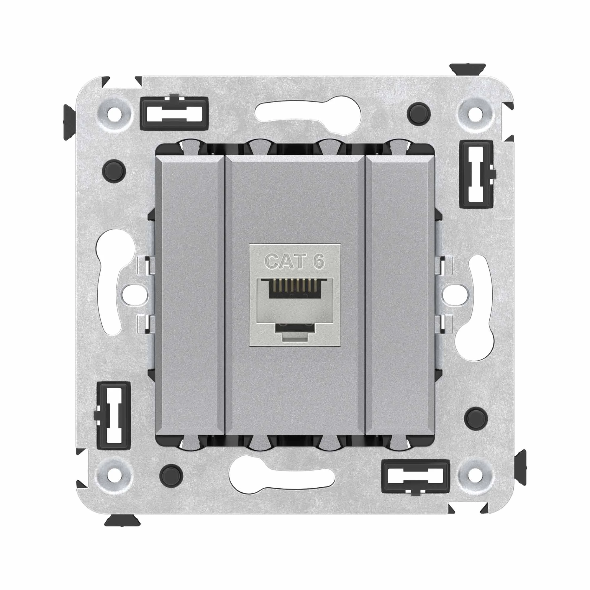 DKC Avanti Компьютерная розетка RJ-45 без шторки в стену, кат.6 одинарная экранированная, «Закаленная сталь»