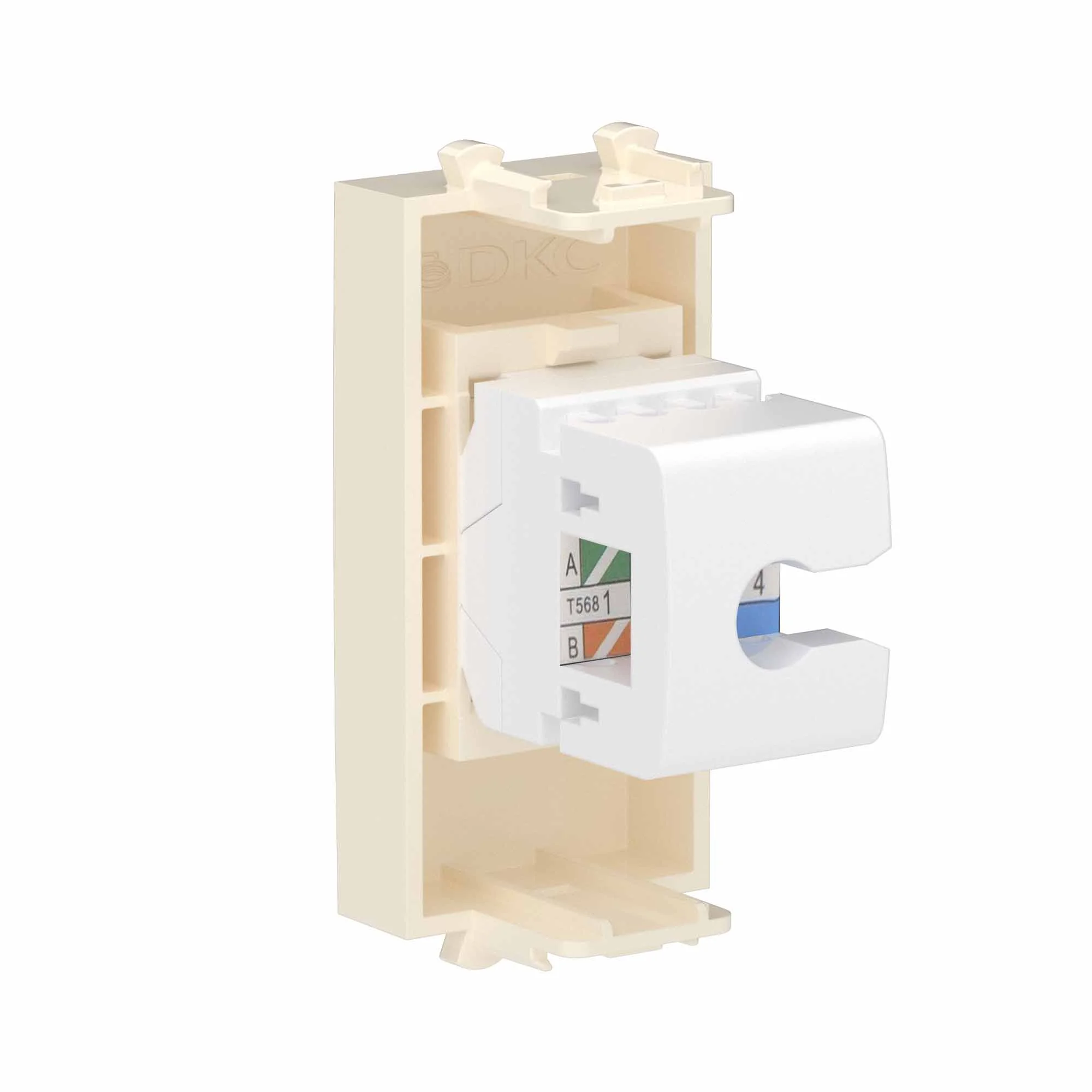 DKC Avanti Компьютерная розетка RJ-45 без шторки модульная, кат.5е экранированная, «Ванильная дымка», 1 модуль