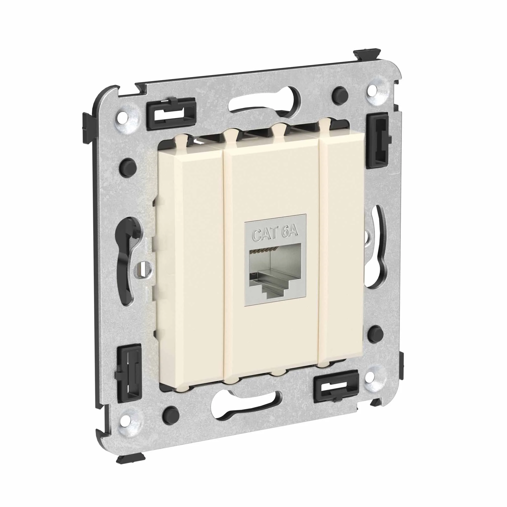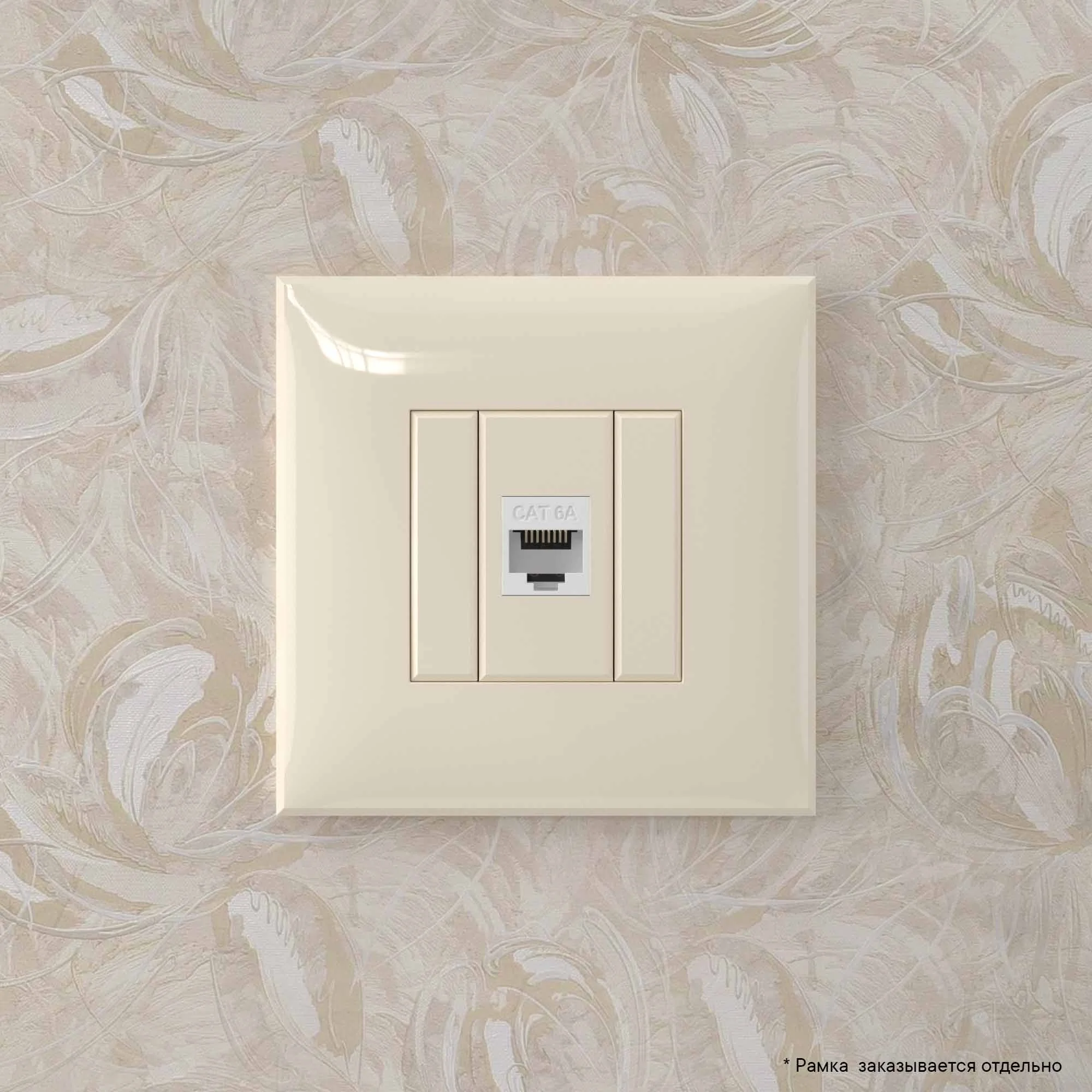 DKC Avanti Компьютерная розетка RJ-45 без шторки в стену, кат.6A одинарная экранированная, «Ванильная дымка»