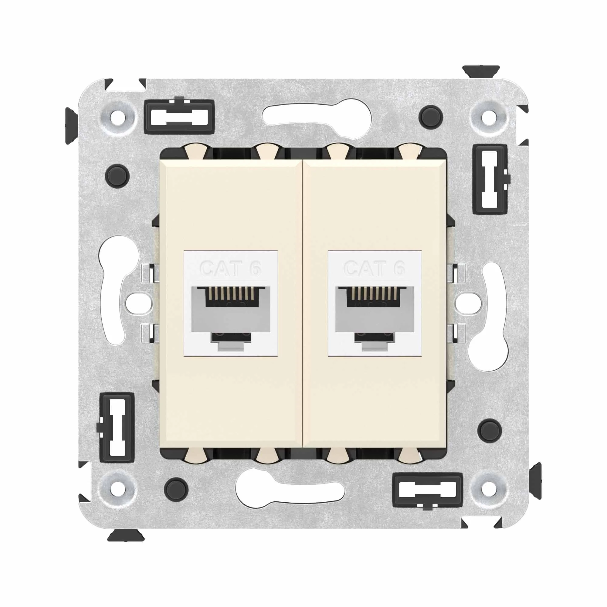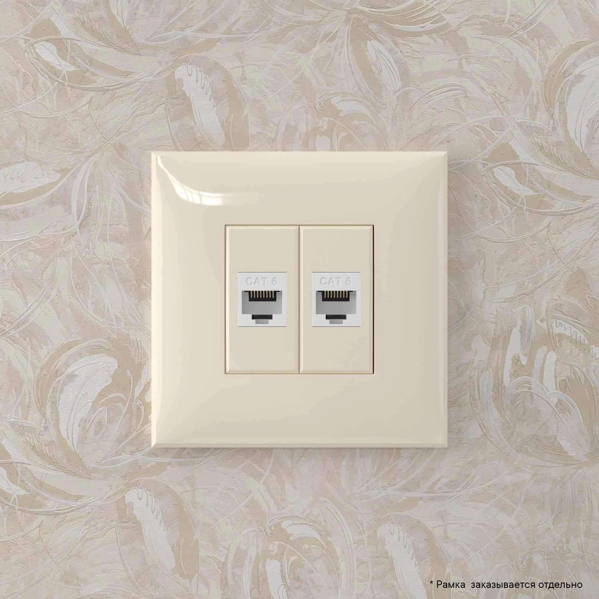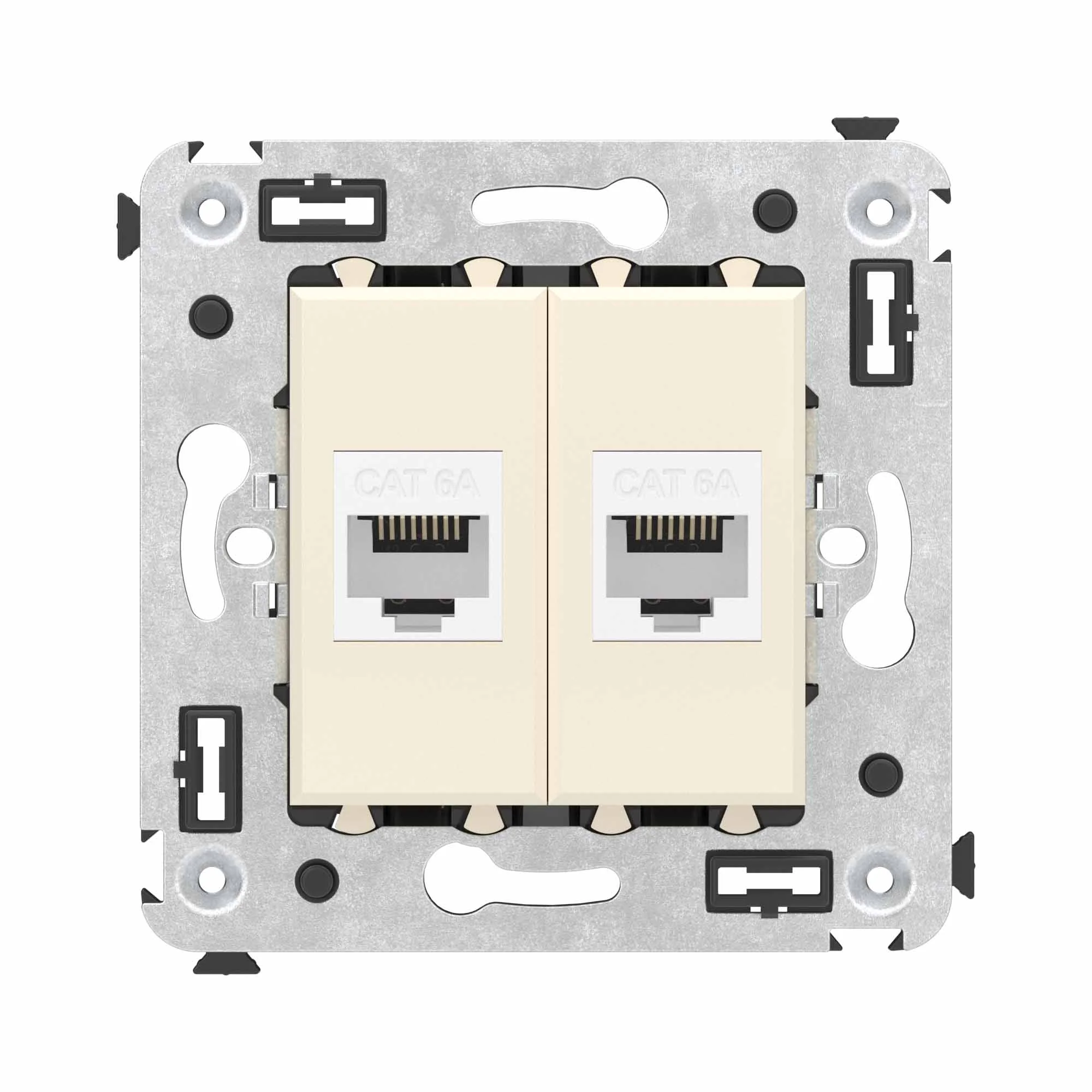 DKC Avanti Компьютерная розетка RJ-45 без шторки в стену, кат.6А двойная, «Ванильная дымка»