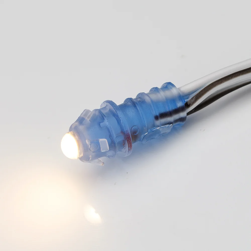 Герметичный светодиодный модуль IP67, ТЕПЛЫЙ 3000-3700К, напряжение 12 В, мощность 0.18 Вт, светодиод DIP 5 мм, угол 90°. 50 шт на проводе, расстояние между модулями 70 мм. Размер Ø9×22 мм. Гарантия 1 год. Кратность заказа поставщику: 500 шт.