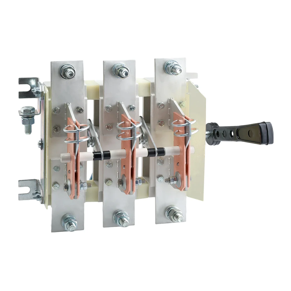 Выключатель-разъединитель 3 полюсный на номинальный ток 1000 А, где установлена съемная рукоятка, а механическая износостойкость составляет 6300 циклов.