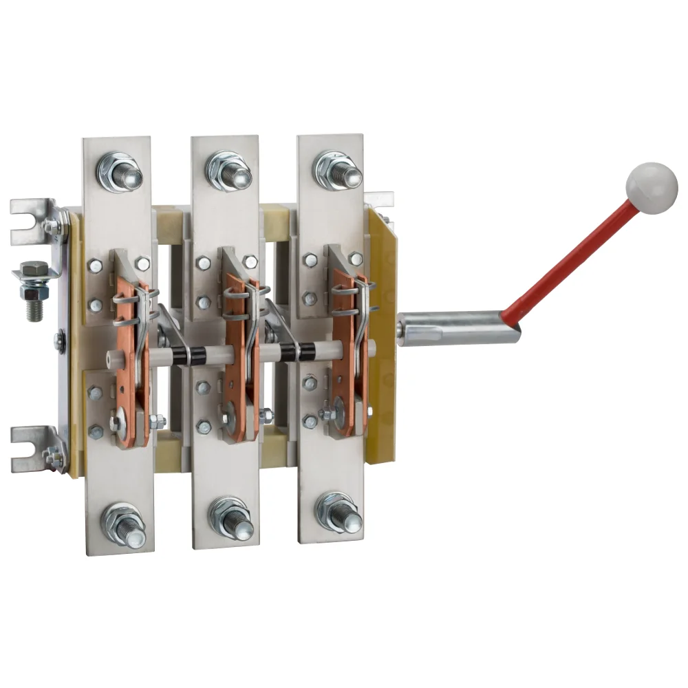 Выключатель-разъединитель 3 полюсный на номинальный ток 400 А, где установлена съемная рукоятка, а механическая износостойкость составляет 10000 циклов.