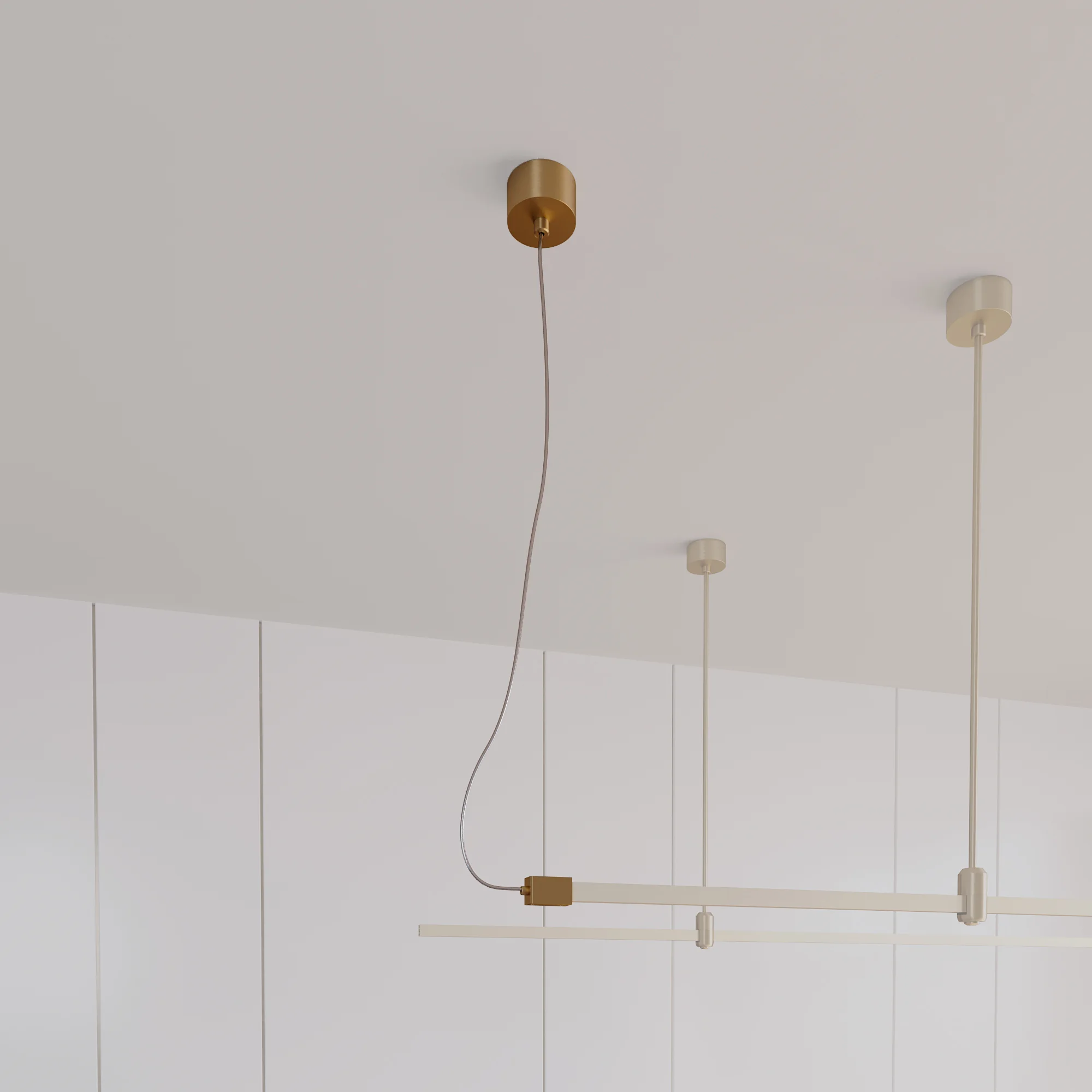 Потолочная чаша с боковым подводом питания треков системы APRIORI. Напряжение питания DC48V. Размер Диаметр 80 мм. высота 40 мм. Длина троса 1500 мм. Материал алюминий, цвет светлое золото.