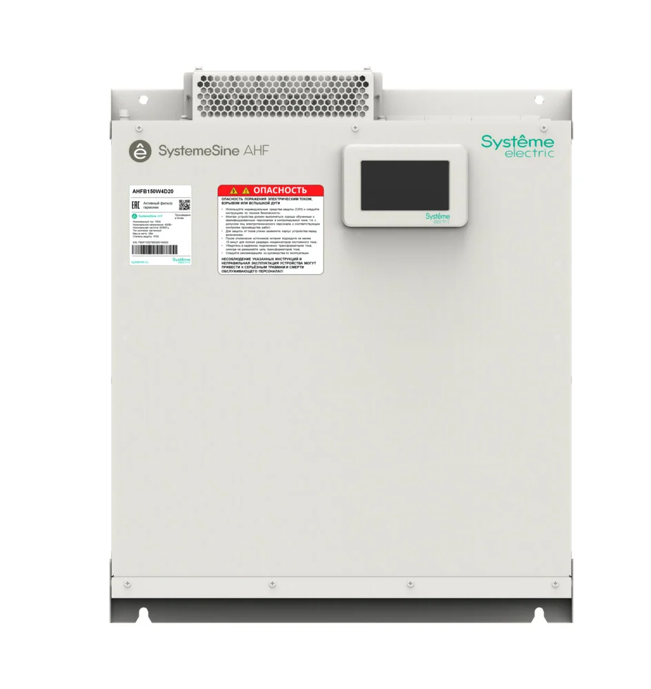 Активный фильтр гармоник торговой марки Systeme Electric серии SystemeSine типа AHF, номинальный ток 150А, номинальное напряжение 400В, степень защиты IP20, навесной модуль с встроенным 4,3 дюймовым ЖК дисплеем