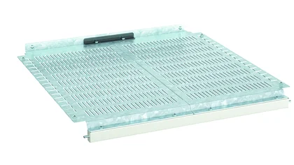 Верхняя потолочная панель предназначена для установки мембраных фланцев типа FL21. Устанавливается вместо стандартной глухой панели. Для монтажа фланцев имеется 4 готовых выреза. Подходит для шкафа шириной 800 мм и глубиной 800 мм.