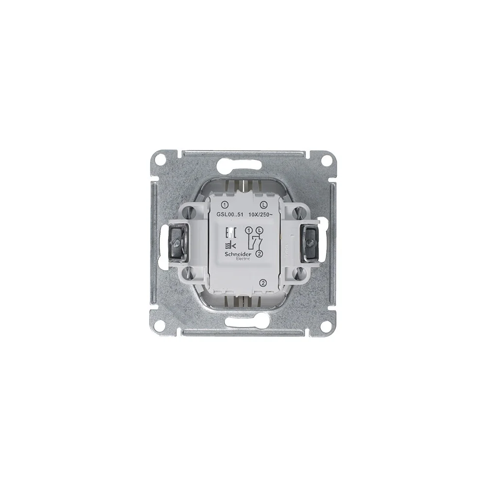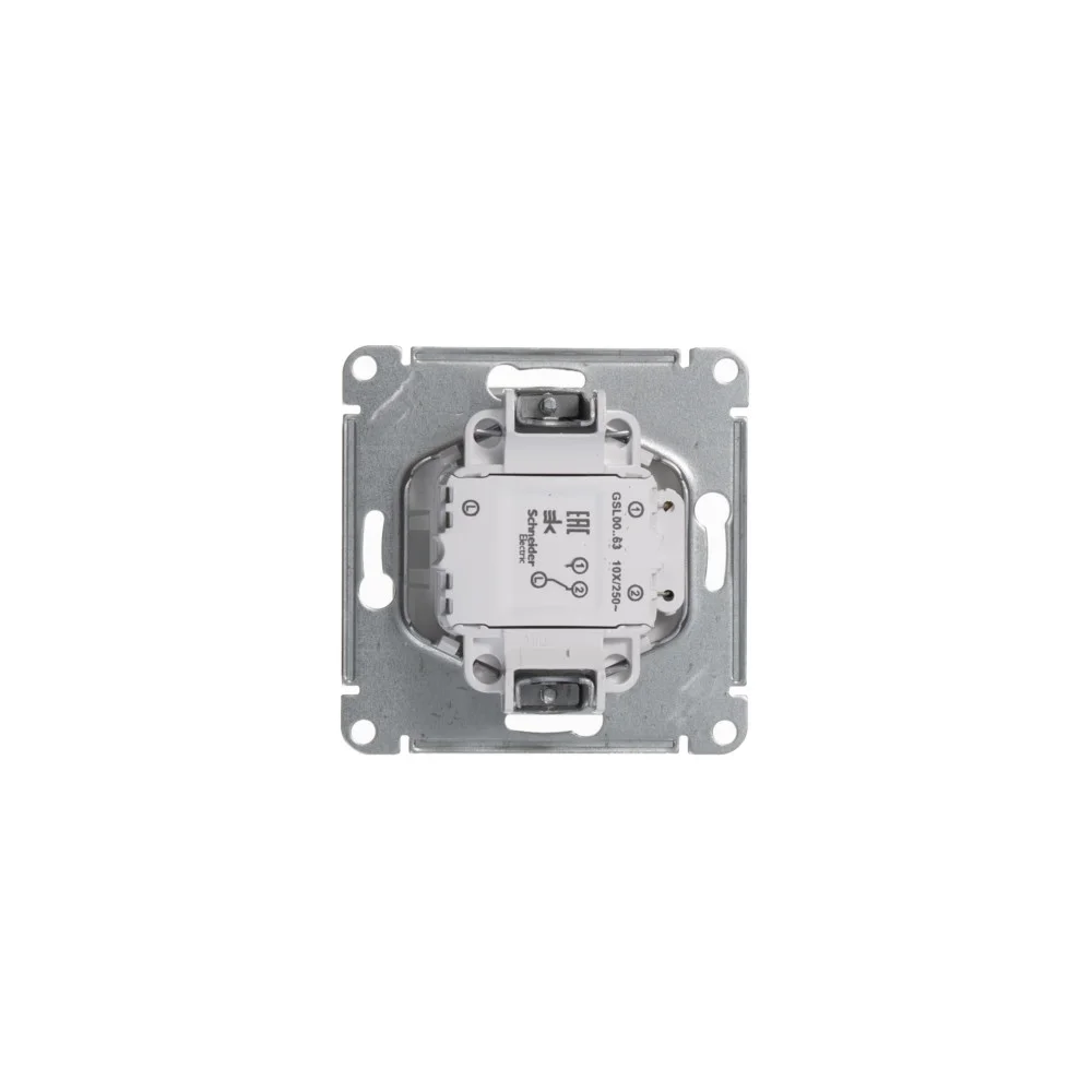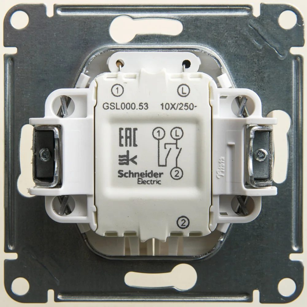 Механизм Systeme Electric (ранее Schneider Electric) серии Glossa (цвет платина) выключателя 1-клавишного подходит для сетей 250 В, на ток 10 А. — Выполнен из материала PС+ASA, стойкого к УФ-излучению и появлению царапин. — Эргономичные клеммы расположены в два ряда: сверху и снизу.