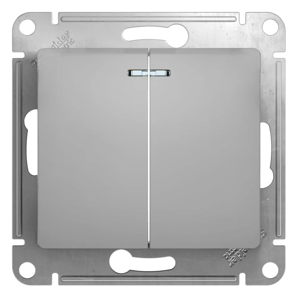 Systeme Electric Glossa Алюминий Выключатель 2-клавишный с подсветкой, сх.5а, 10АХ