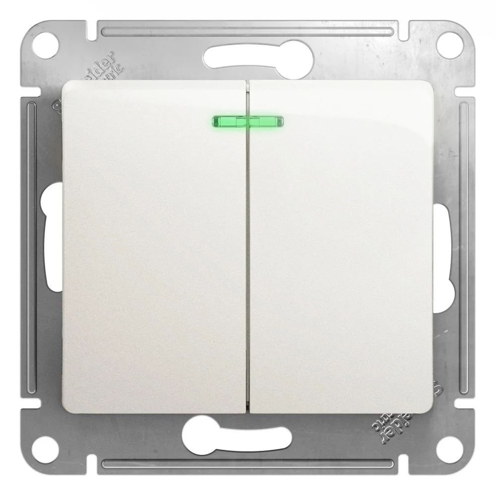 Systeme Electric Glossa Перламутр Выключатель 2-клавишный с подсветкой сх.5а, 10АХ