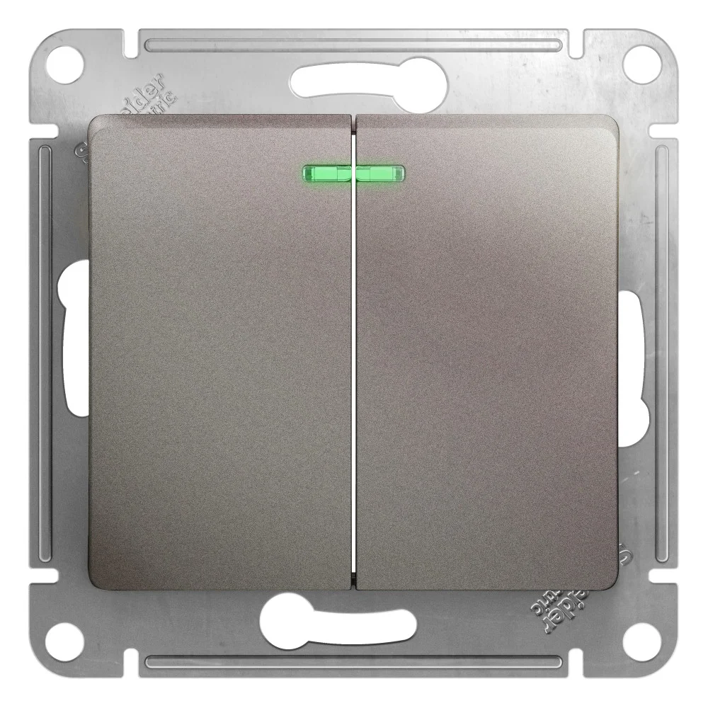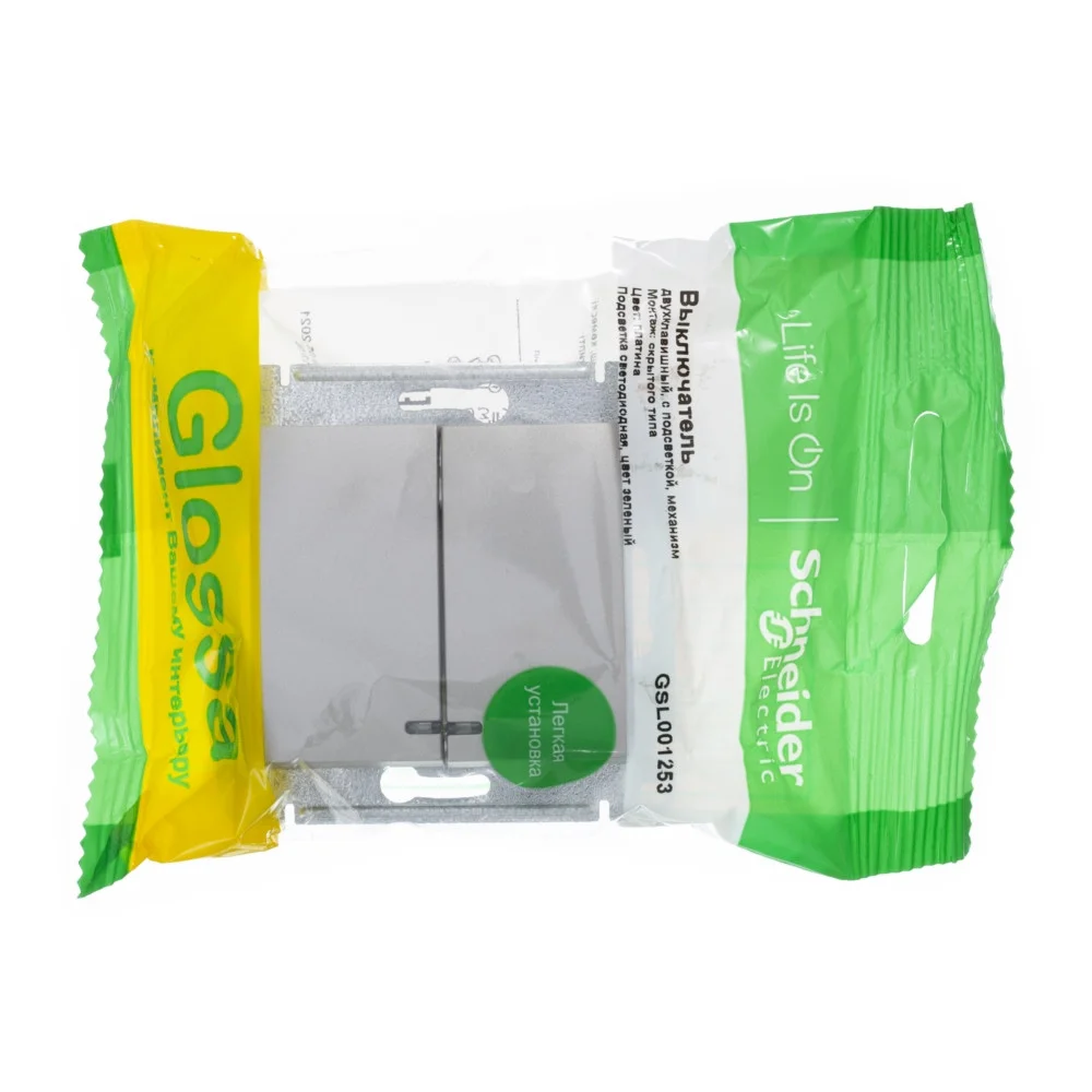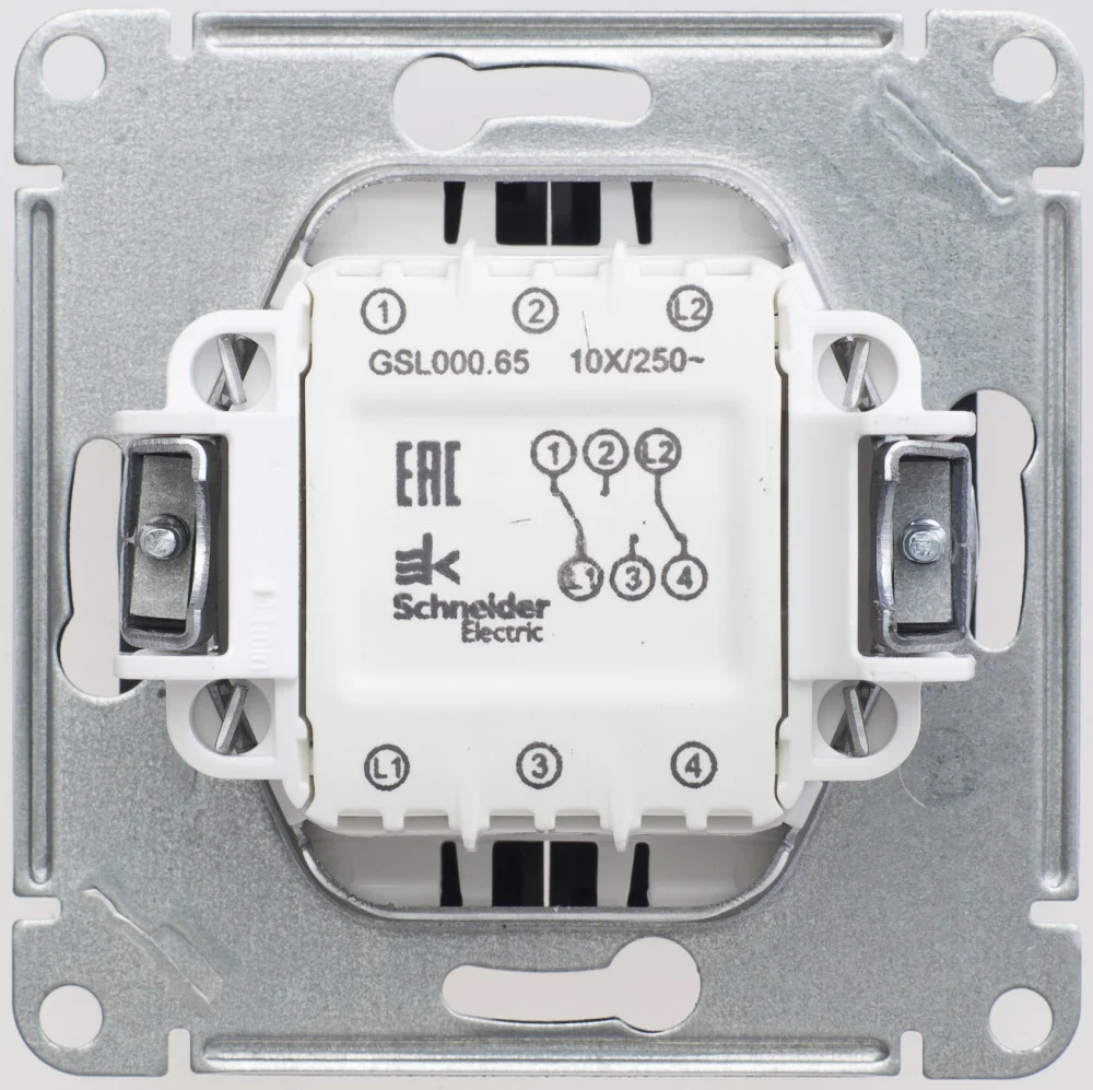 Механизм Systeme Electric (ранее Schneider Electric) серии Glossa (цвет титан) переключателя 2-клавишного подходит для сетей 250 В, на ток 10 А. — Переключатель позволяют управлять одним источником света с двух точек. — Выполнен из материала PС+ASA, стойкого к УФ-излучению и появлению царапин. — Эргономичные клеммы расположены в два ряда: сверху и снизу.