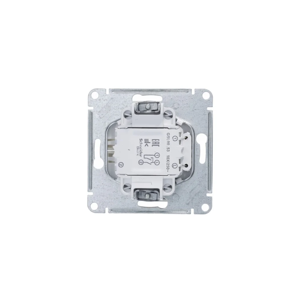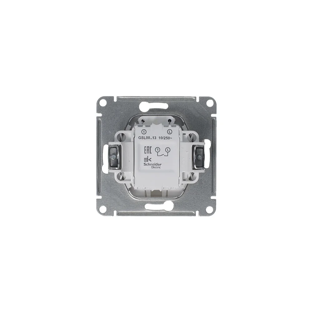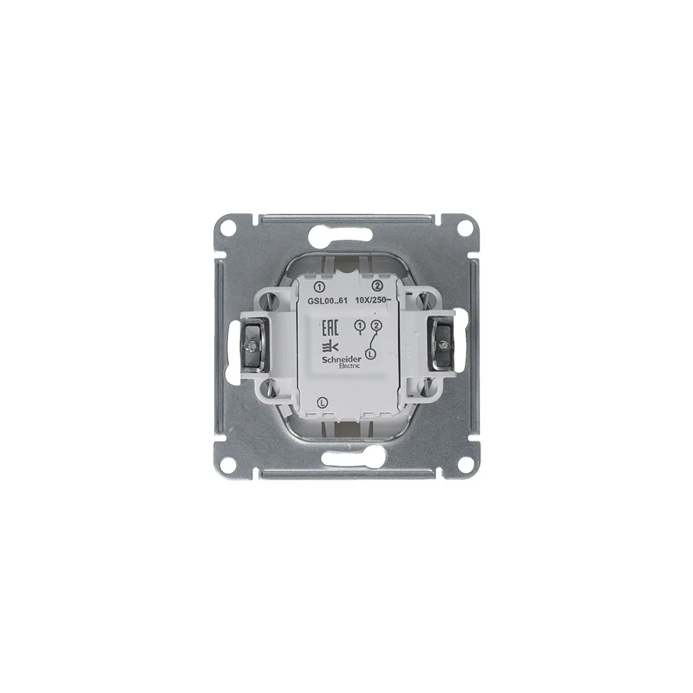 Механизм Systeme Electric (ранее Schneider Electric) серии Glossa (цвет белый) выключателя 1-клавишного с самовозвратом подходит для сетей 250 В, на ток 10 А. — Выполнен из материала PС+ASA, стойкого к УФ-излучению и появлению царапин. — Эргономичные клеммы расположены в два ряда: сверху и снизу.