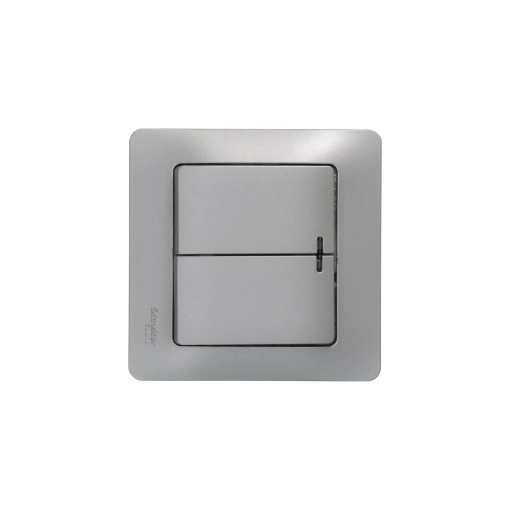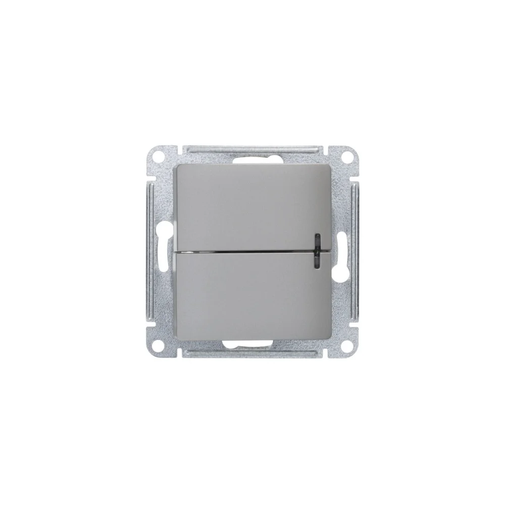 Механизм Systeme Electric (ранее Schneider Electric) серии Glossa (цвет алюминий) переключателя 2-клавишного подходит для сетей 250 В, на ток 10 А. — Переключатель позволяют управлять одним источником света с двух точек. — Выполнен из материала PС+ASA, стойкого к УФ-излучению и появлению царапин. — Эргономичные клеммы расположены в два ряда: сверху и снизу.