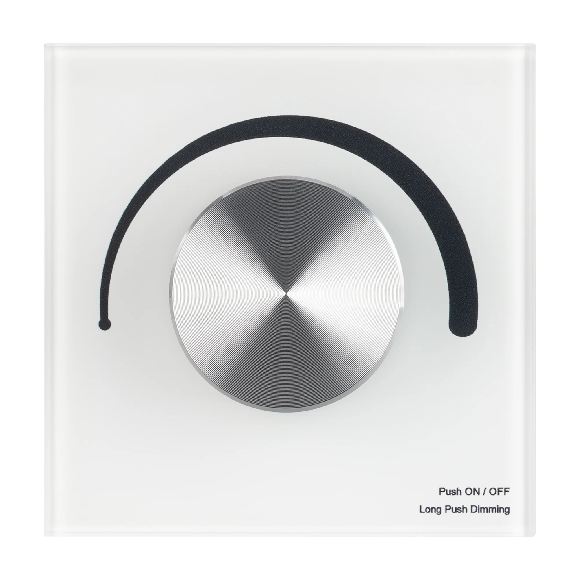 Встраиваемая роторная панель RF 2.4 ГГц, цвет белый. Материал — стекло. Выходной сигнал 0/1-10V. Управление яркостью с помощью роторного вращателя. Работает в режиме master/slave, 1 зона. Питание DC 24-48V. Габариты 86х86х48 мм. Панель совместима с 0/1-10V контроллерами и драйверами, а также, пультами серии SMART.