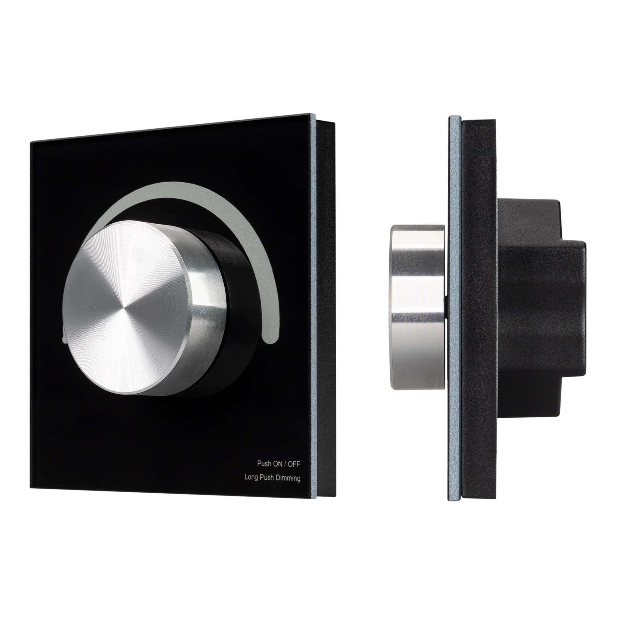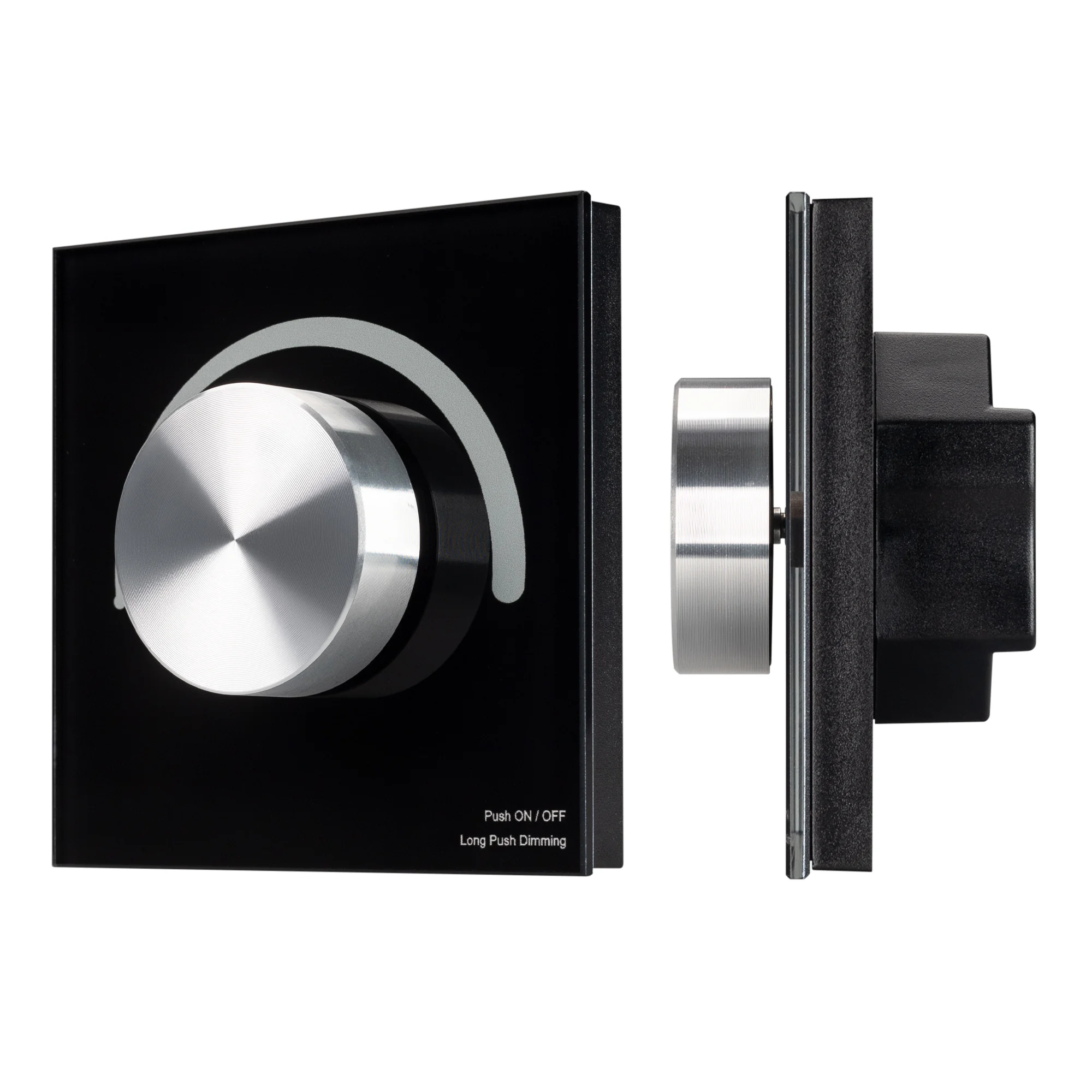 Встраиваемая роторная панель RF 2.4 ГГц, цвет чёрный. Материал — стекло. Выходной сигнал 0/1-10V. Управление яркостью с помощью роторного вращателя. Работает в режиме master/slave, 1 зона. Питание DC 24-48V. Габариты 86х86х48 мм. Панель совместима с 0/1-10V контроллерами и драйверами, а также, пультами серии SMART.