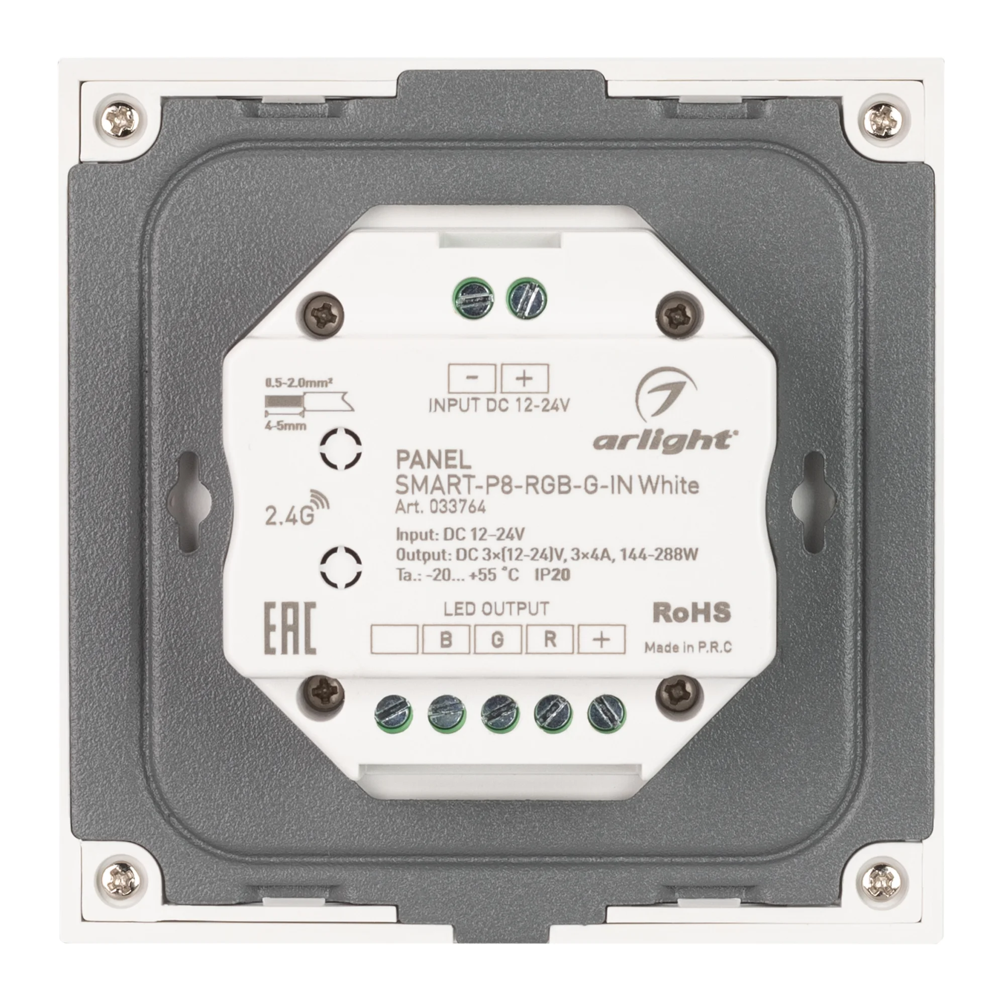 Встраиваемая роторная стеклянная панель 2.4 ГГц, цвет белый. Для управления одноцветными источниками света (ШИМ). Управление яркостью с помощью роторного регулятора. Работает в режиме master/slave и может выполнять функцию независимого контроллера. Питание/рабочее напряжение 12-24VDC, 4 параллельных канала по 3А максимальной нагрузки на канал, максимальная суммарная мощность 144-288W. Габариты 86х86х50 мм. Панель совместима с диммерами серии SMART. […]