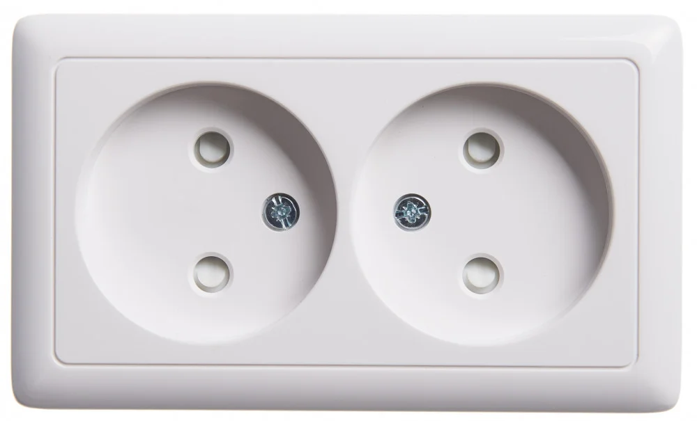 Розетка Systeme Electric (ранее Schneider Electric) ХИТ (открытой установки, цвет белый) двойная без заземления со шторками, с изолирующей пластиковой пластиной предназначена для сетей до 250 В на ток до 16 А. — Двойная розетка позволяет подключить два устройства в одном месте. — Шторки обеспечивают дополнительную безопасность в доме, где находятся дети. — Сделано в России.