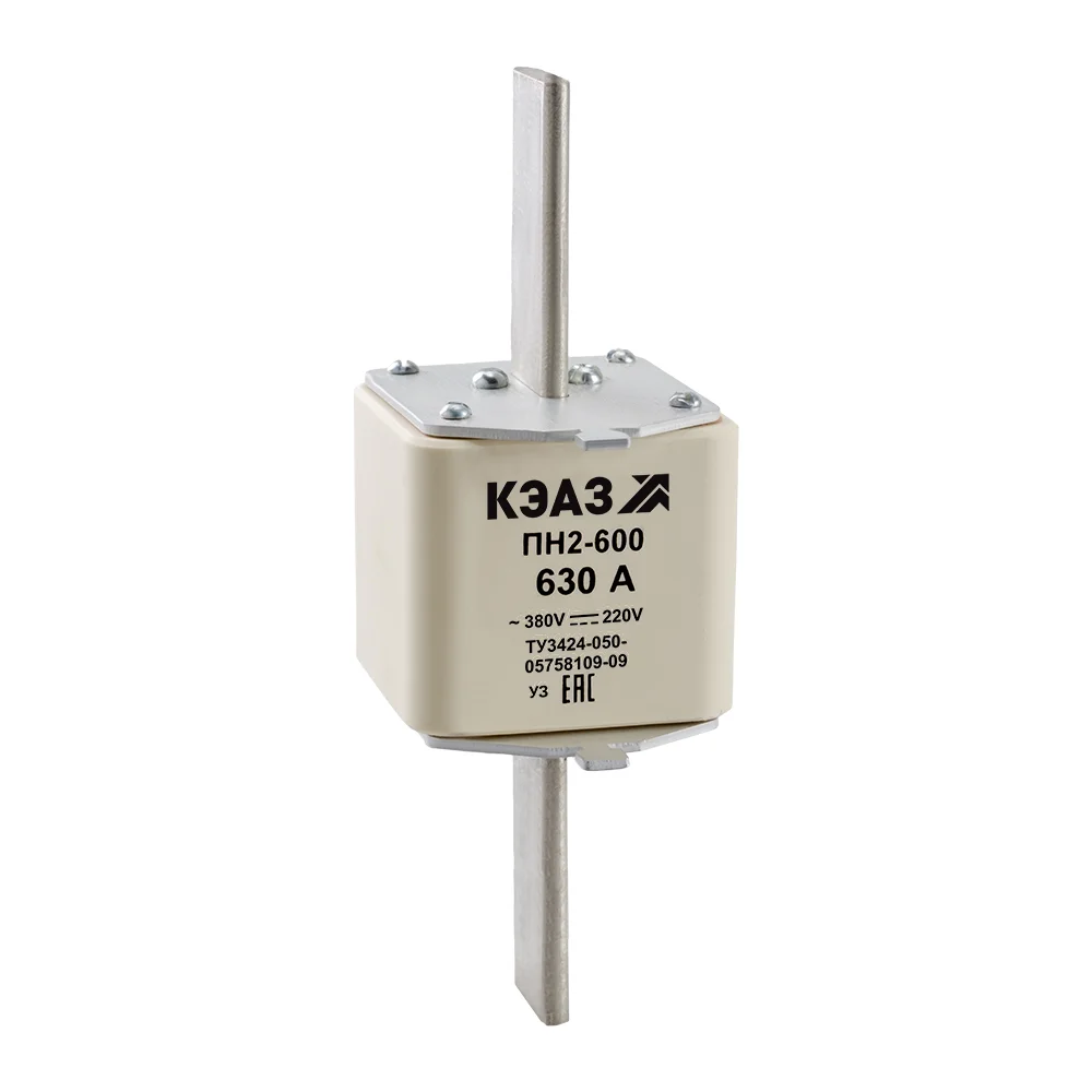 Предохранитель ножевого типа на номинальный ток 630 А, габаритом 4 и потерями мощности 48 Вт.
