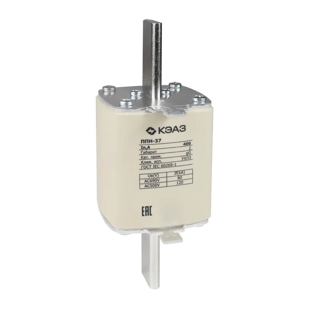 Предохранитель ножевого типа на номинальный ток 355 А, габаритом 2 и потерями мощности 34 Вт.