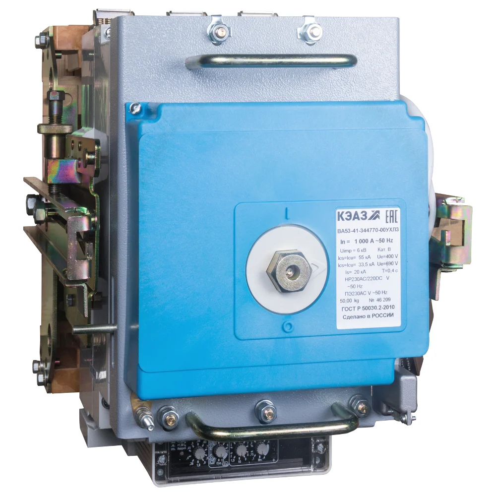 Блочный автоматический 3 полюсный выключатель переменного тока с предельной коммутационной способностью при переменном токе 85 кА на номинальный ток 1000 А .