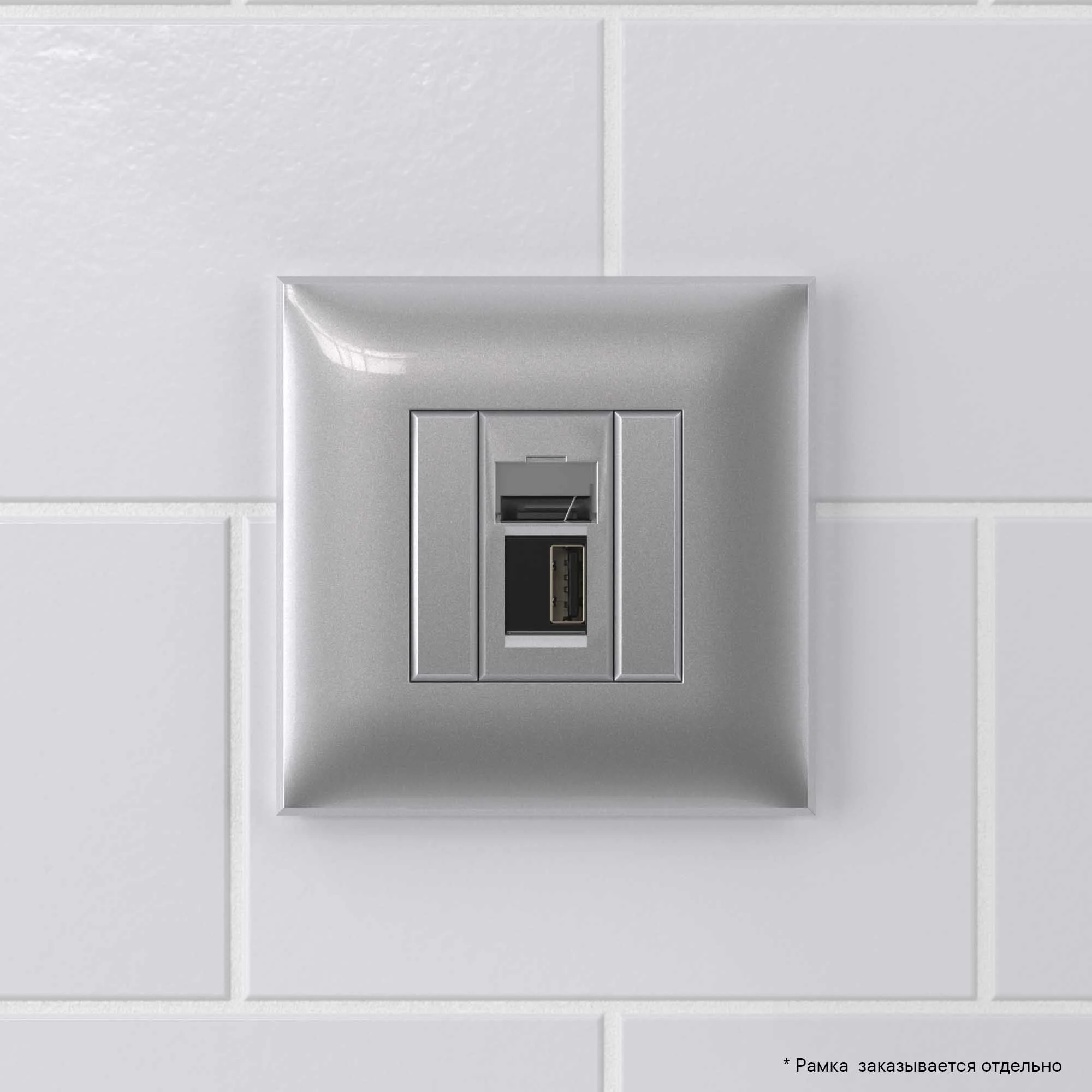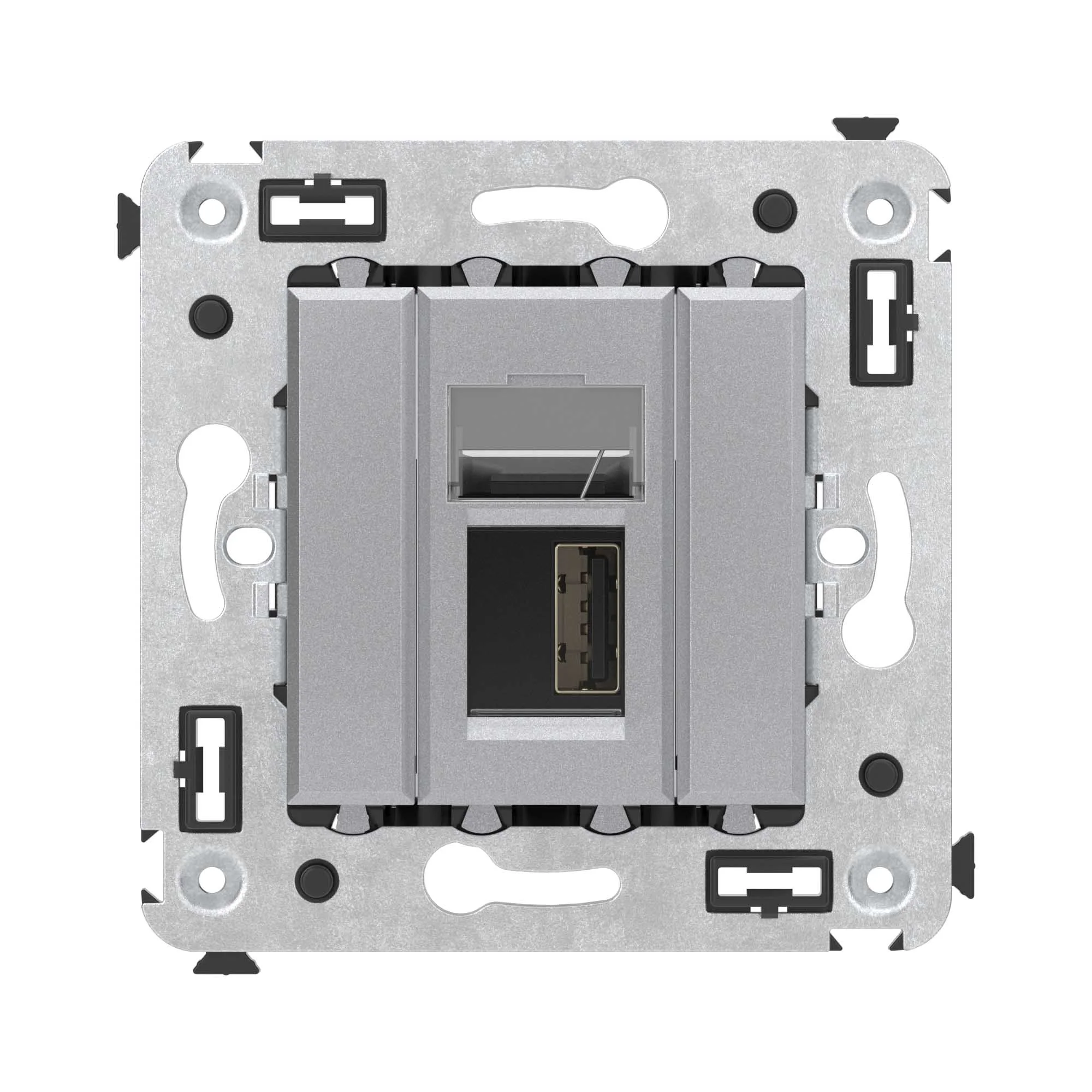 DKC Avanti USB 2.0 розетка одинарная в стену, тип А-А, «Закаленная сталь»