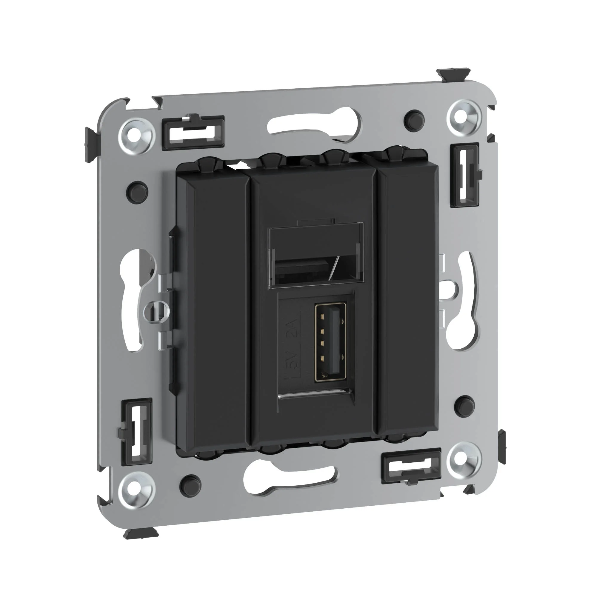 DKC Avanti USB 2.0 розетка одинарная в стену, тип А-А, «Черный матовый»