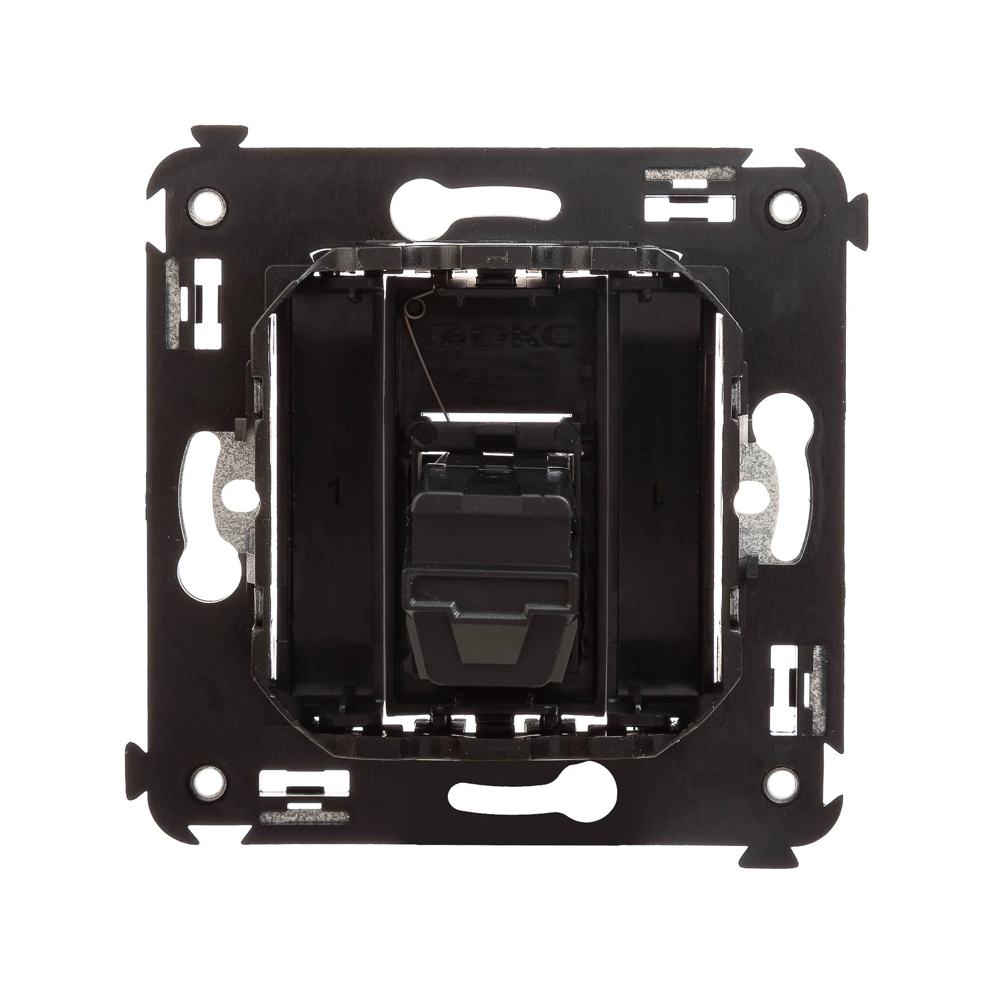 USB 2.0 розетка. Назначение: для монтажа в подрозеточные коробки глубиной не менее 45 мм (код 59301). Используется в качестве информационной розетки для передачи сигнала (подключение проекторов, мониторов и др.). 2 модуля. Цвет: «Черный матовый». Производитель оставляет за собой право вносить во внешний вид изделия изменения, которые не влияют на его функционал, безопасность и надежность.
