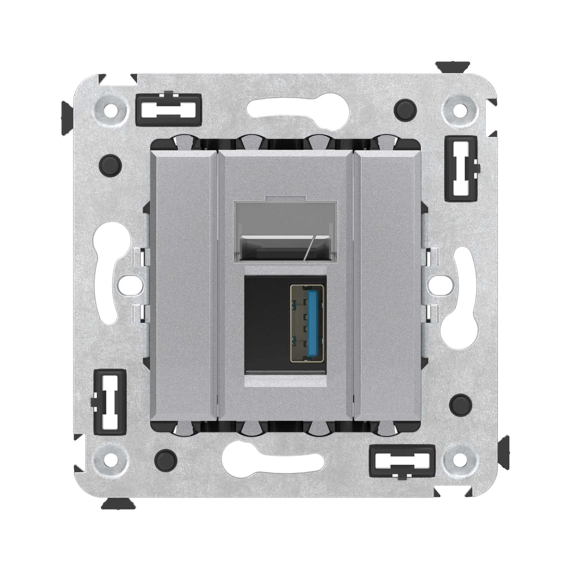 USB 3.0 розетка. Назначение: для монтажа в подрозеточные коробки глубиной не менее 45 мм (код 59301). Используется в качестве информационной розетки для передачи сигнала (подключение проекторов, мониторов и др.). Цвет: «Закаленная сталь». Производитель оставляет за собой право вносить во внешний вид изделия изменения, которые не влияют на его функционал, безопасность и надежность.